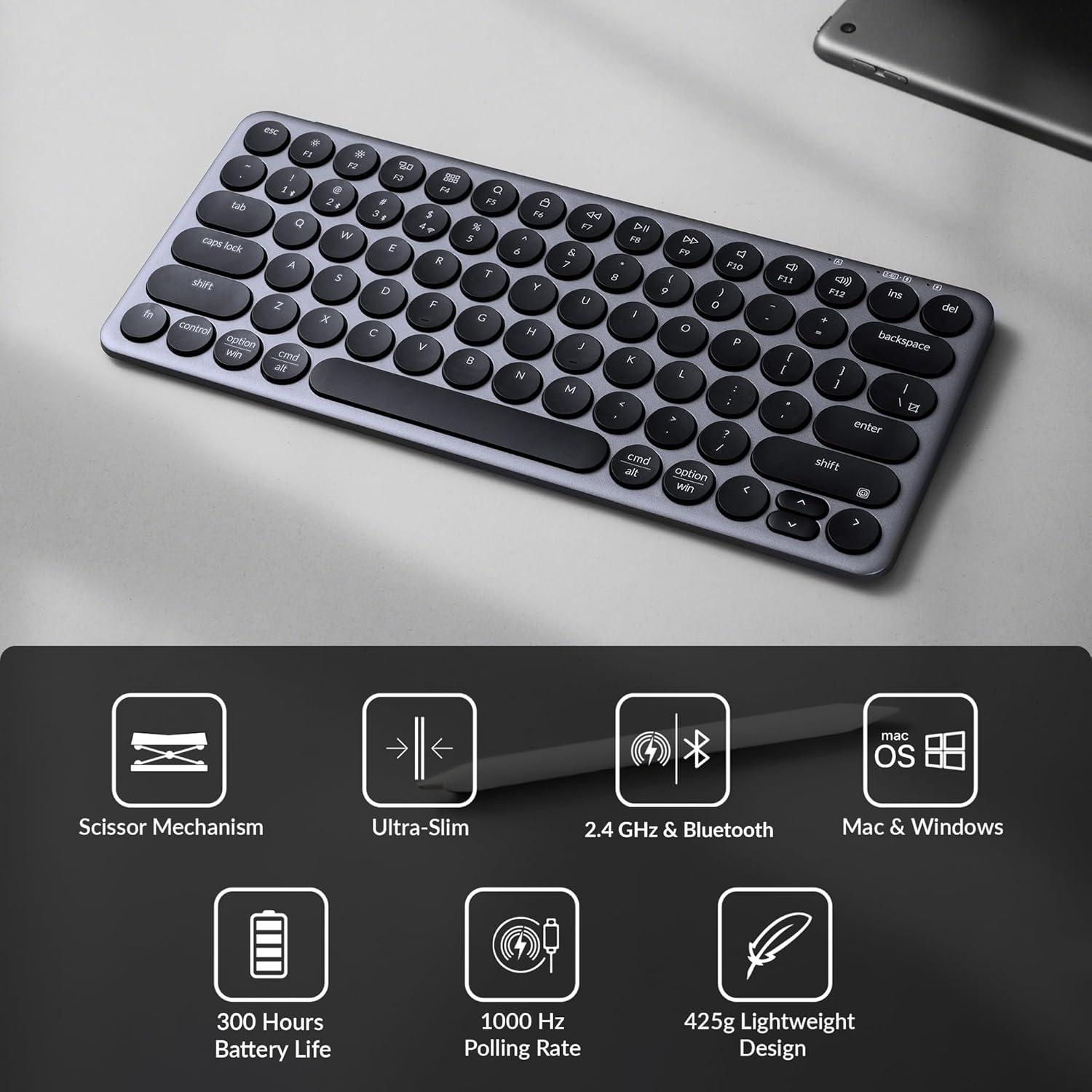 Ultra-Slim Body, Round Keycaps: The ultra-slim body combined with round keycaps ensures precise input and a more comfortable typing experience. Shaped to fit your fingertips naturally, they help reduce errors and boost overall typing efficiency.