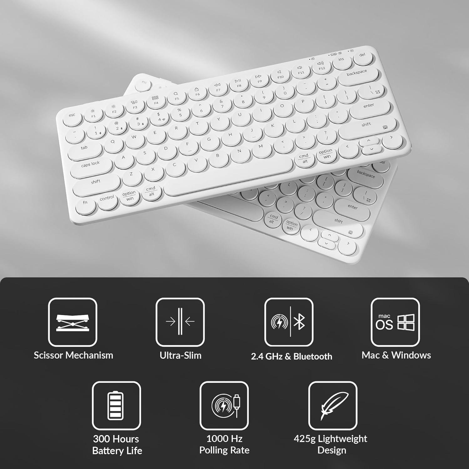 Ultra-Slim Body, Round Keycaps: The ultra-slim body combined with round keycaps ensures precise input and a more comfortable typing experience. Shaped to fit your fingertips naturally, they help reduce errors and boost overall typing efficiency.