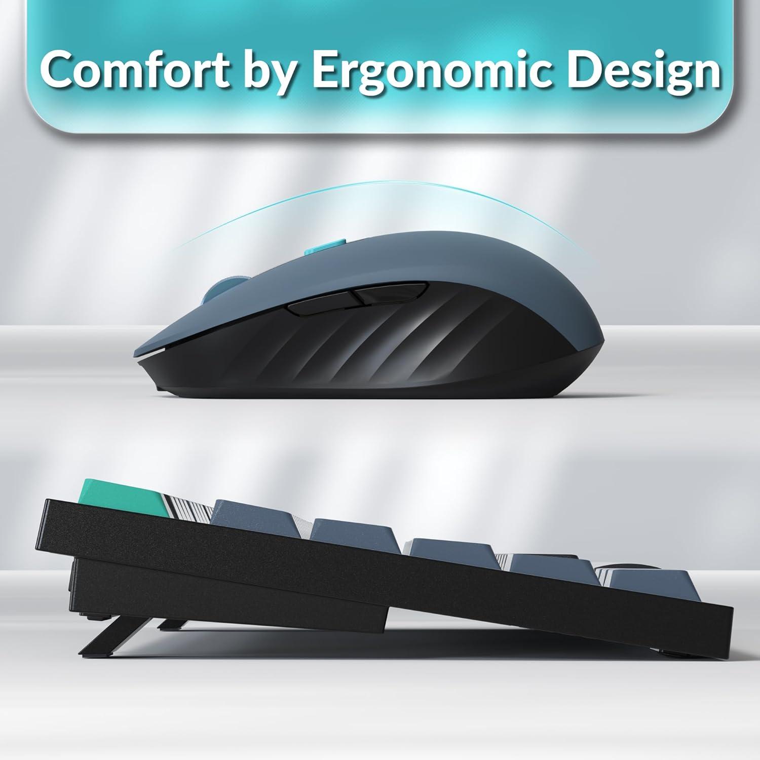 Portable & Long battery life: The 80% TKL keyboard saves desk space. The 79g BM25 mouse with up to 2400 DPI sensor combines a compact, portable form with robust wireless performance. Meanwhile, the B33 delivers up to 320 hours of continuous use on a single charge, and the BM25 can operate for up to 98 hours in Bluetooth mode.