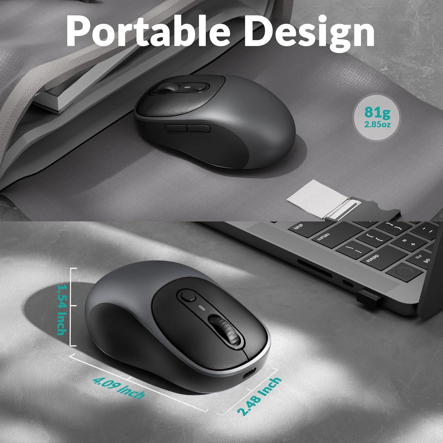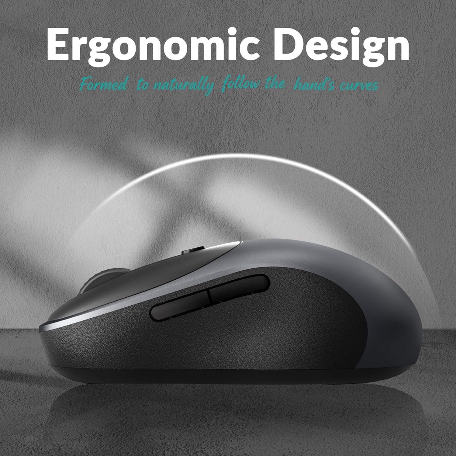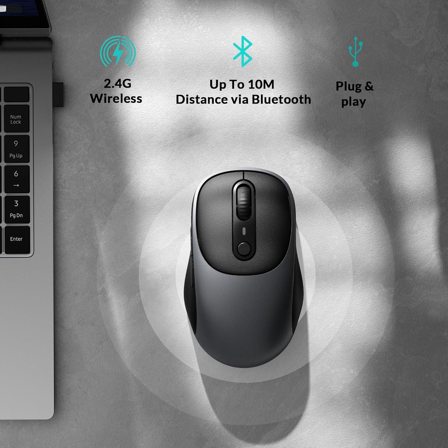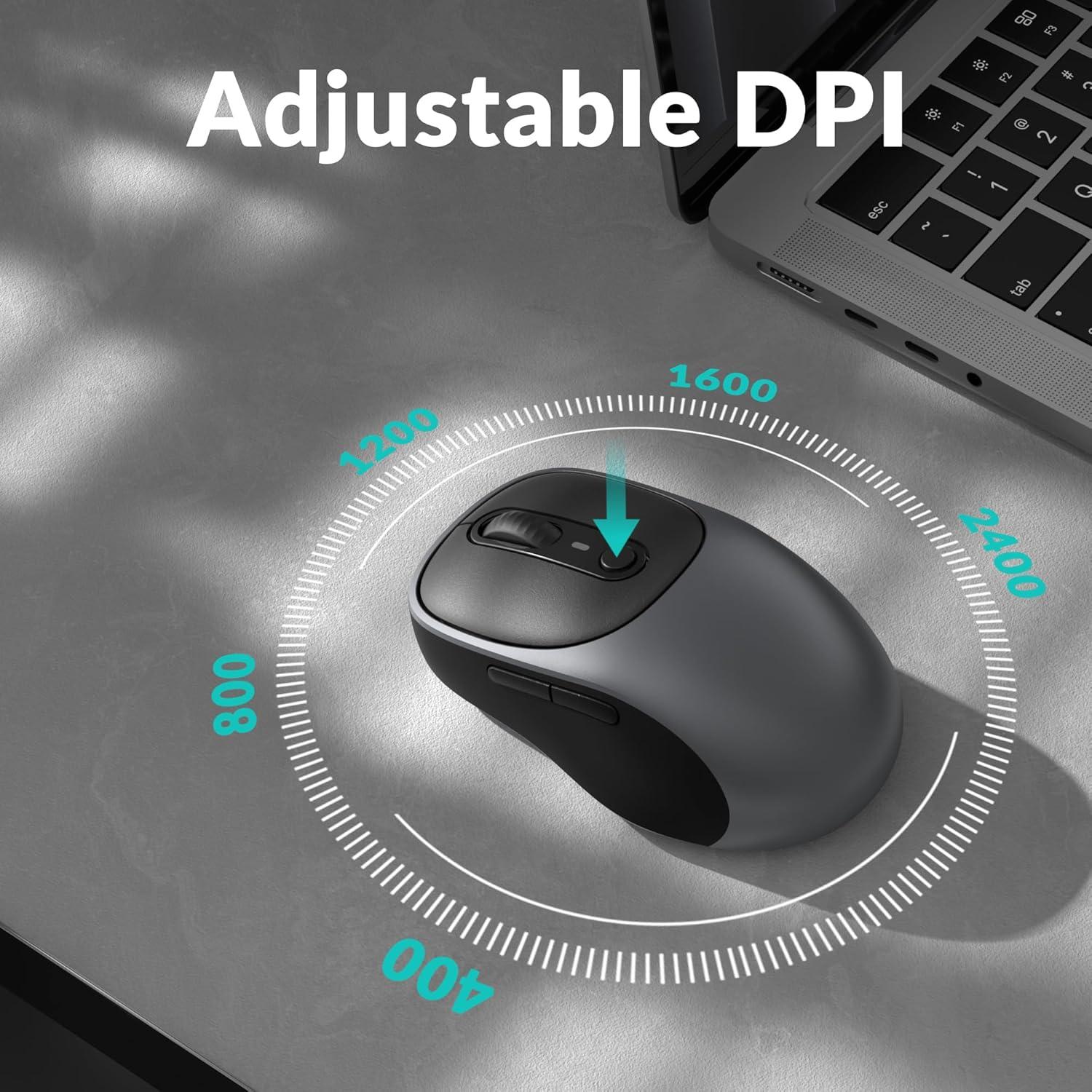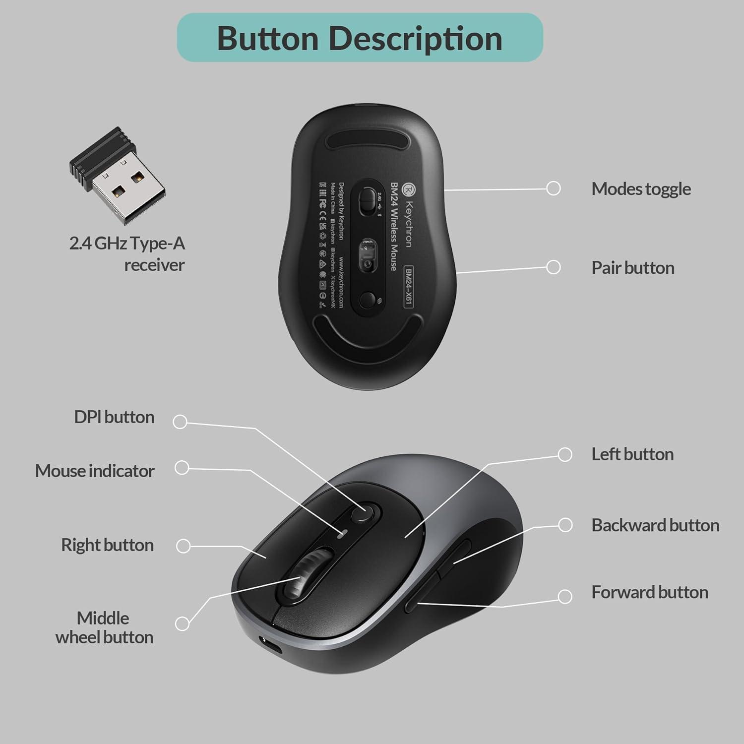 Keychron BM24 Wireless Mouse, 2400 DPI Quiet Clicks, 2.4 GHz/Bluetooth 5.2/Wired with Programmable Buttons, Long Battery Life for Laptop PC/Mac/Windows – Metal Gray(Space Gray)
