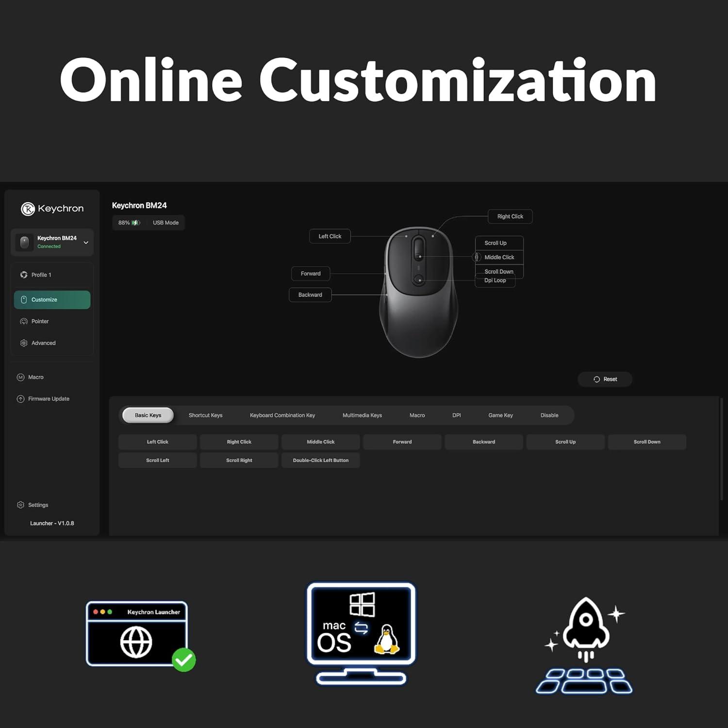 Portable Design: Keychron BM24 packs all the essential features into a lightweight body at only 81g. It supports wireless 2.4 GHz, Bluetooth 5.2 connection, ideal for any daily work scenario, and offers energy-efficient performance to maximize productivity and enjoyment