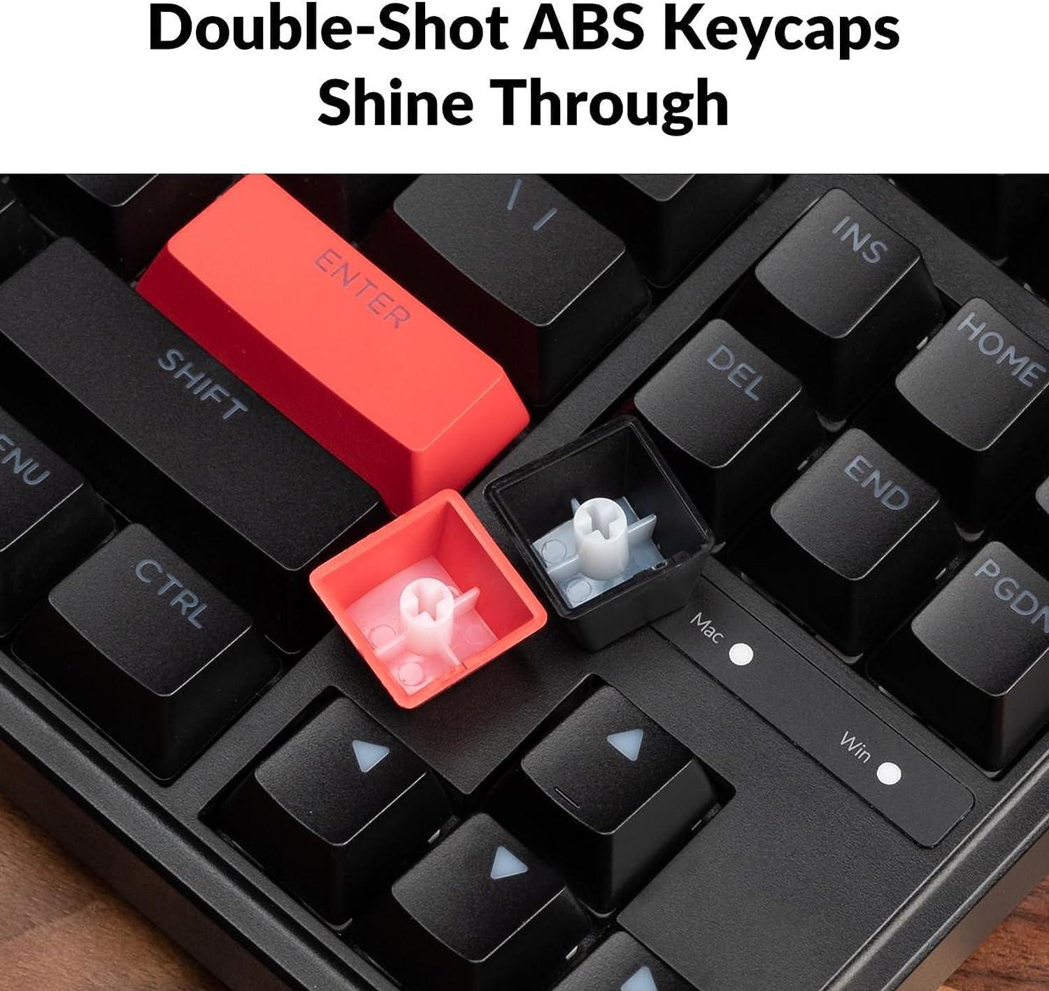 Shine-through double-shot ABS keycaps: Made through the ABS double-shot process, the keycaps are durable and wear-resistant. Meanwhile, the shine-through legends lit up by the north-facing LED present a glamorous look at your fingertips. And you can also switch from more than 18 types of rgb backlights.
