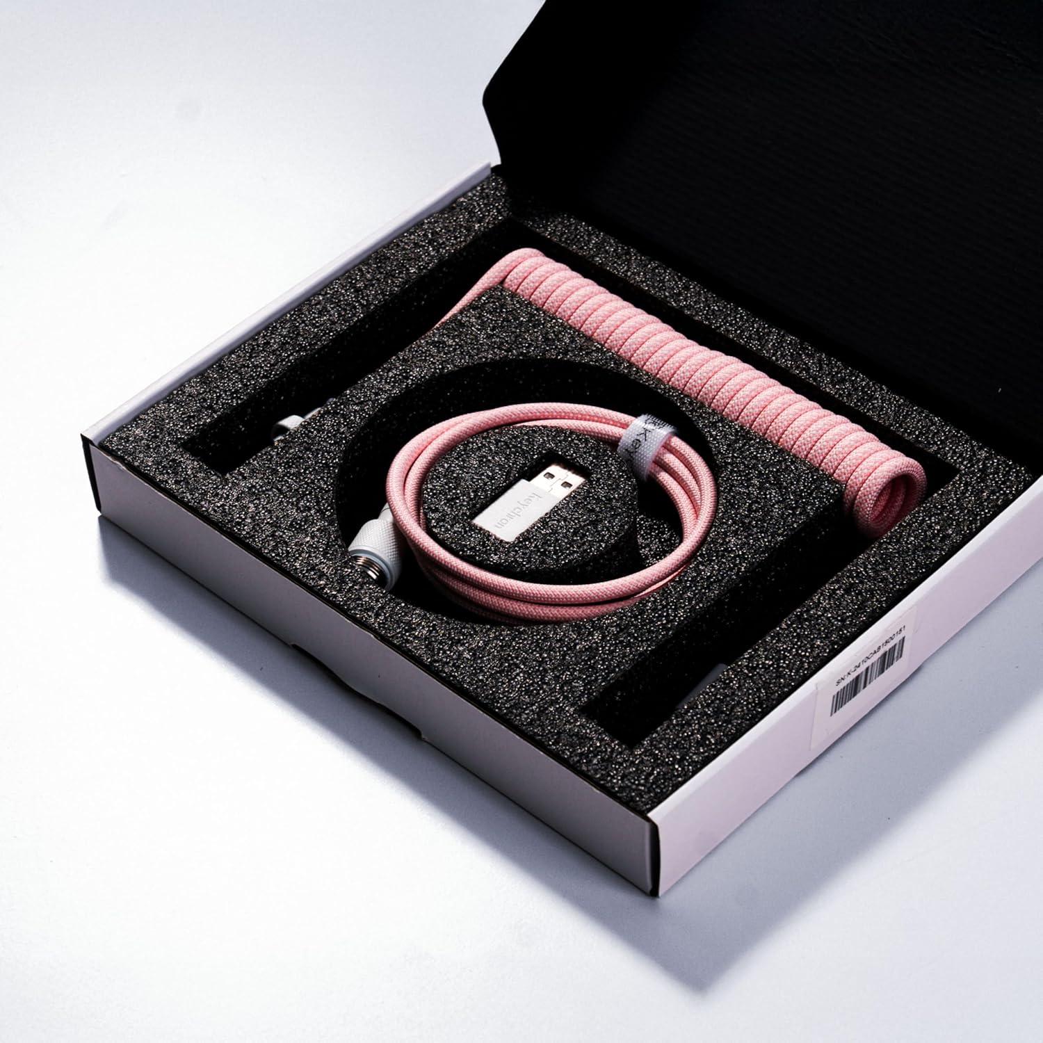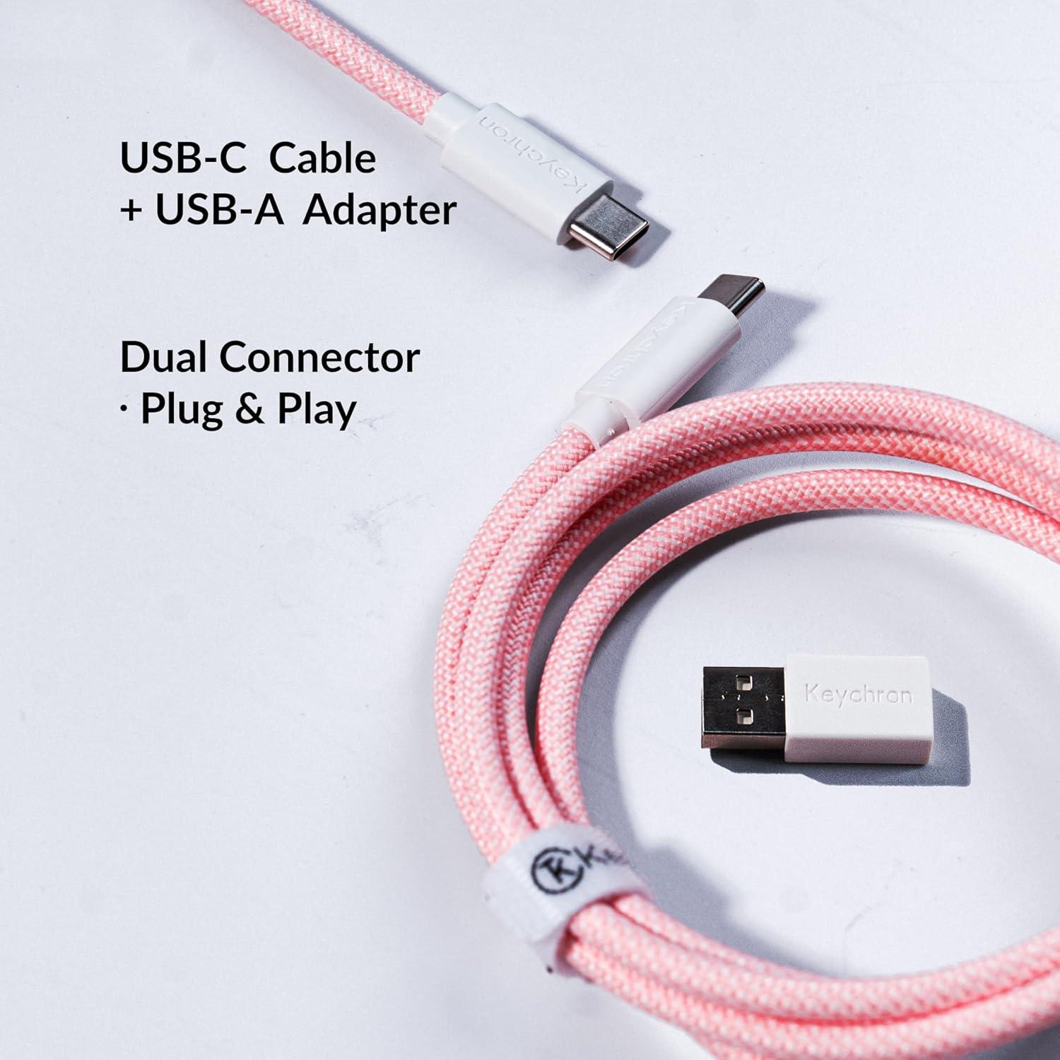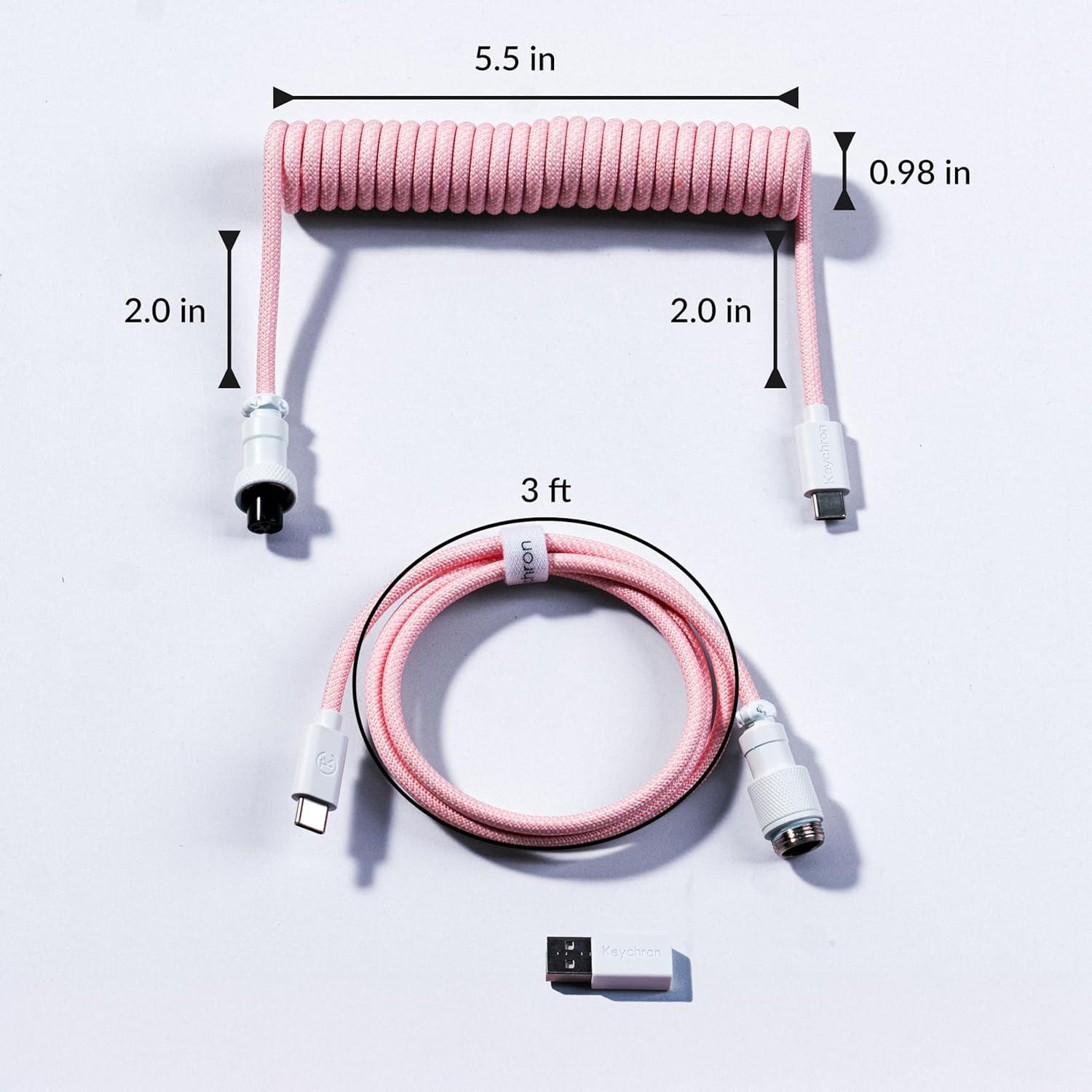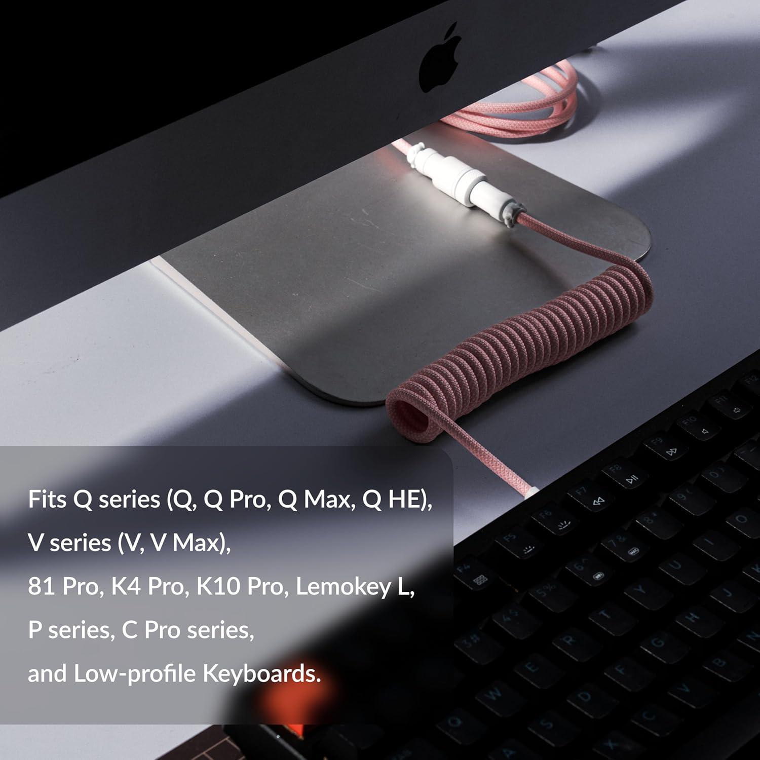 Keychron Custom Coiled Aviator USB-C Cable – Light Blue, 5-Pin (GX12) Detachable Metal Connector, USB-A Adapter, Durable Braided Cable for Mechanical Keyboards, Charging & Data Transfer(Light Pink)