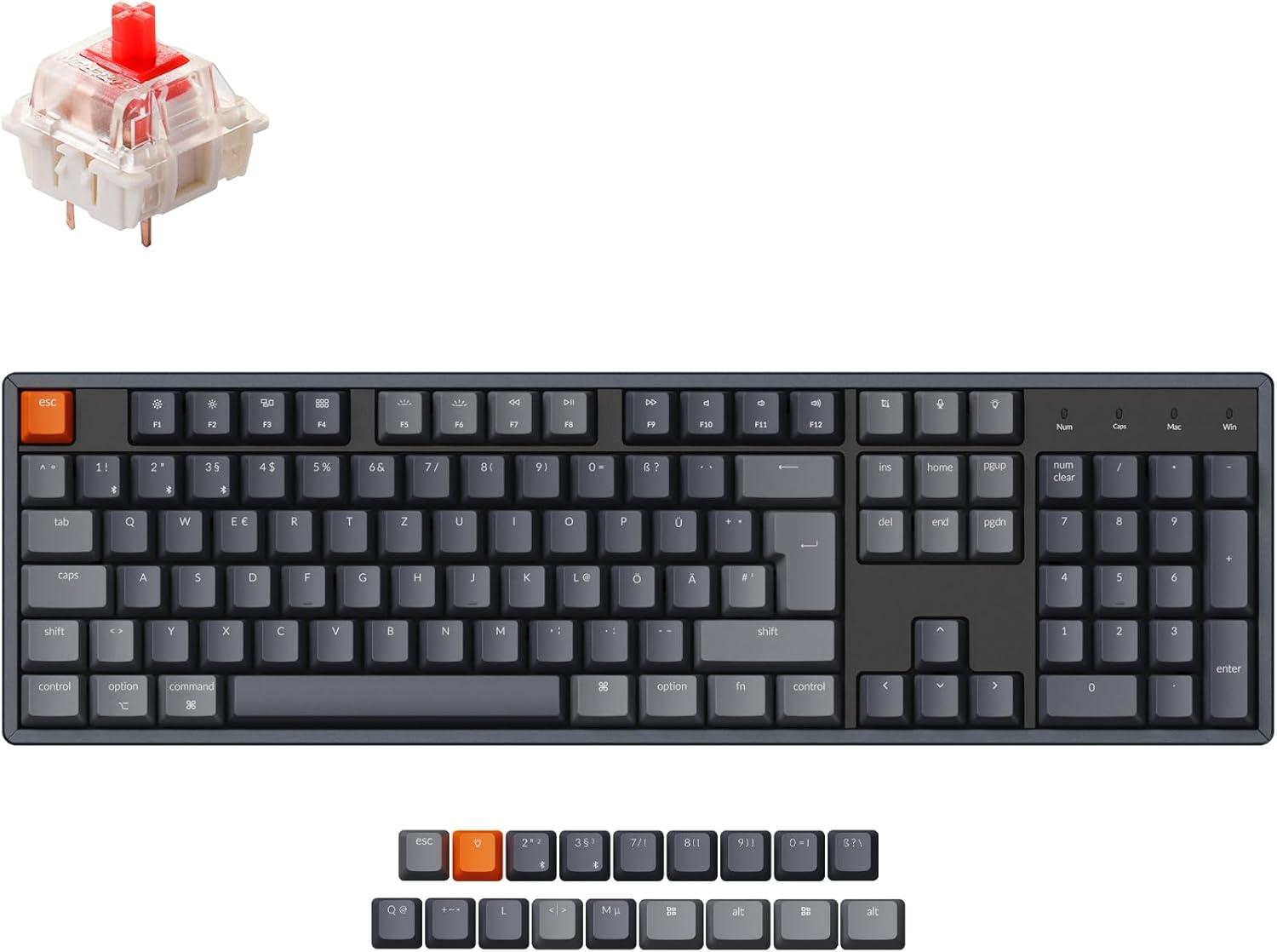 imageKeychron K10 RGB Full Size Layout HotSwappable Mechanical Keyboard for Mac Windows Multitasking 104Key Bluetooth WirelessUSB Wired Gaming Keyboard with K Pro Brown Switch Aluminum FrameHotswap Keychron K Pro Red Switch