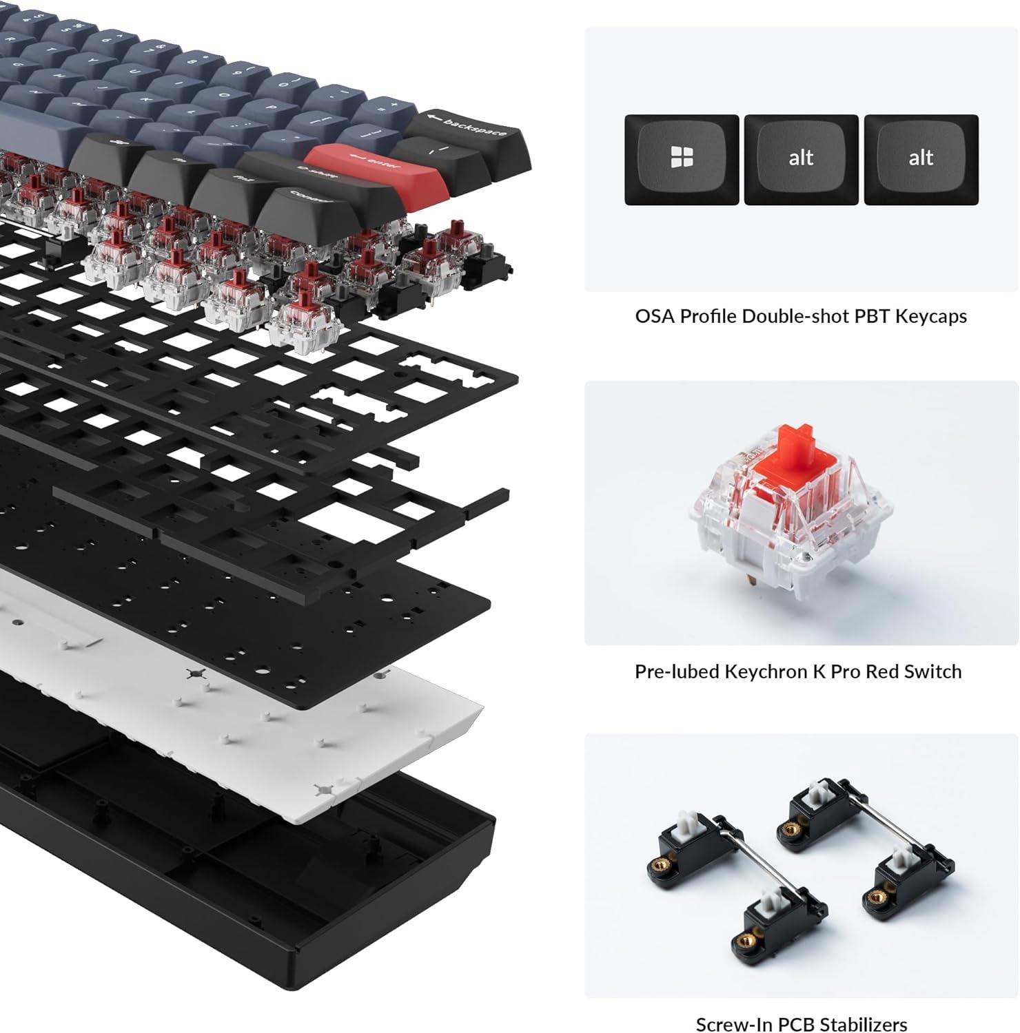 imageKeychron K2 Pro QMKVIA Custom Wireless Mechanical Keyboard HotSwappable 75 Layout Programmable White Backlight K Pro Red Switch BluetoothWired Gaming Keyboard for Mac Windows Linux WhiteK Pro Red Switch