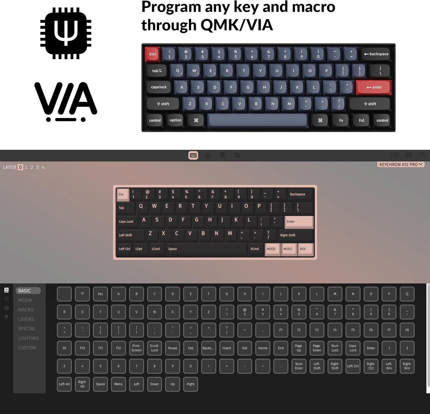 Keychron K12 Pro Custom Wireless/Wired Mechanical Keyboard QMK/VIA Programmable Macro with Hot-Swappable K Pro Red Switch 60% Compact Layout RGB Backlit Compatible with Mac Windows Linux(Keychron K Pro Brown Switch)