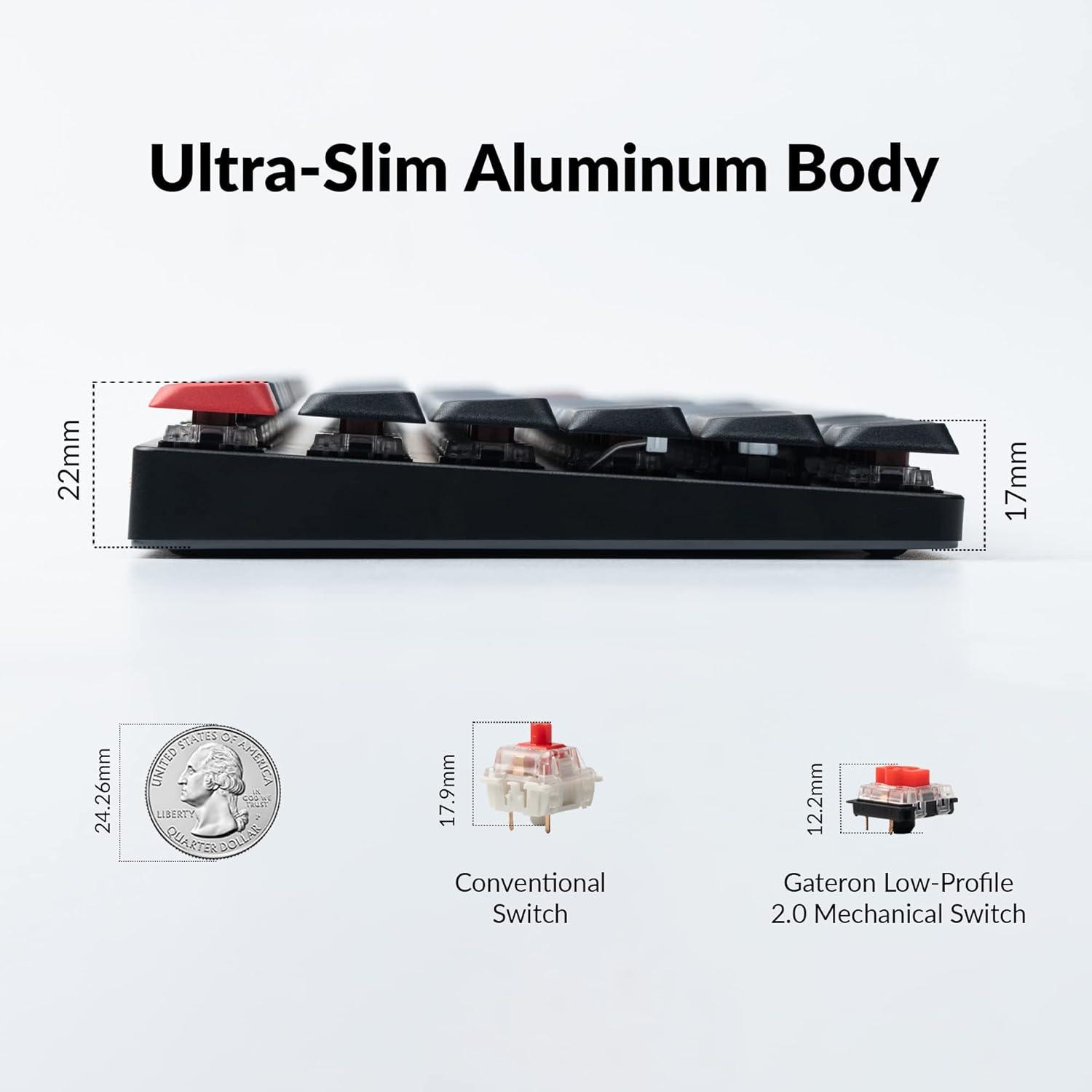 Hot-swappable: You can easily hot-swap every low-profile Gateron mechanical switch in a few seconds to customize the typing experience without soldering. *Note: The K13 Pro is currently compatible with Gateron low-profile mechanical switches only, as QMK does NOT support low-profile optical switches.
