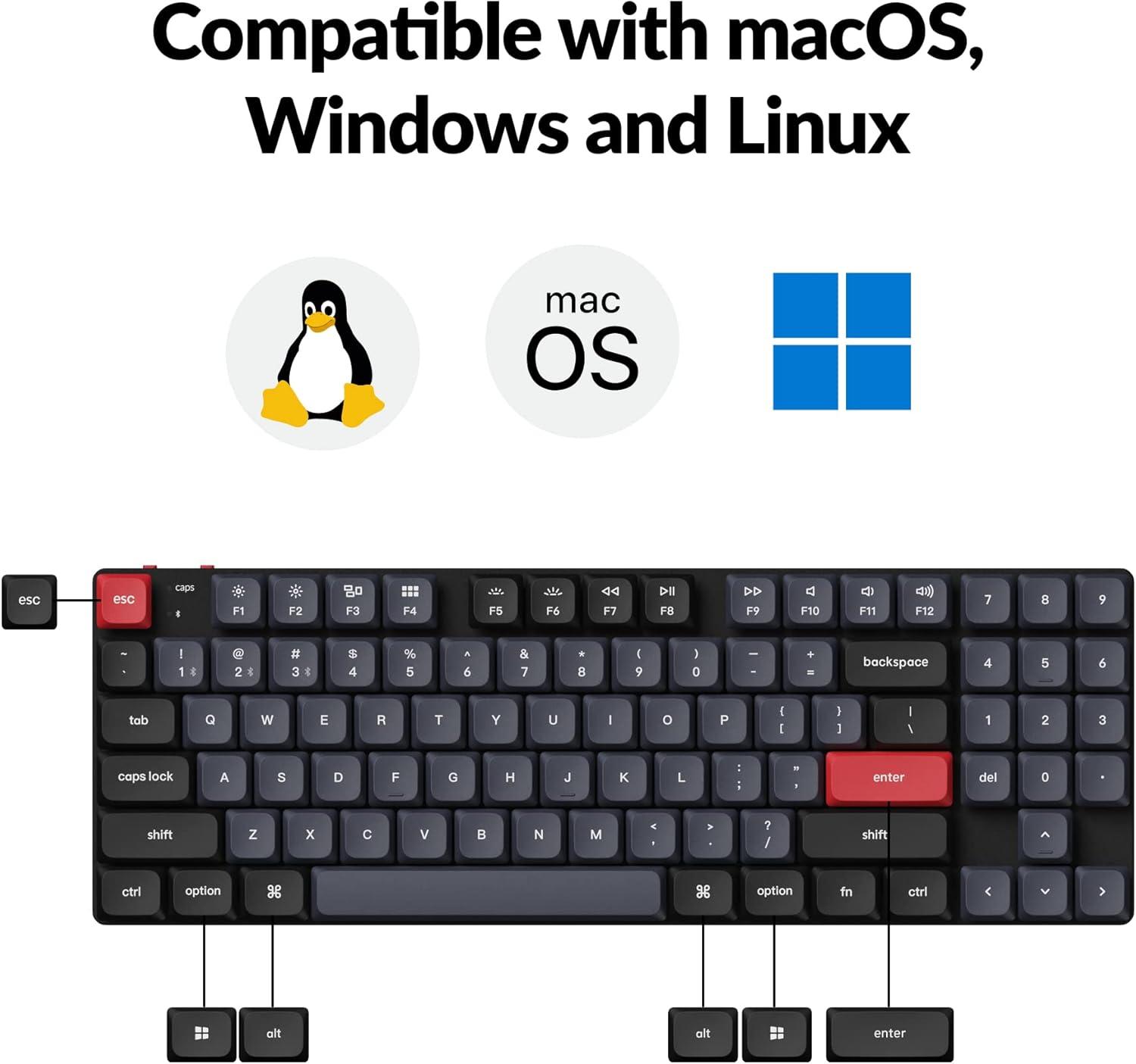 imagekeychron K13 Pro UltraSlim QMKVIA Wireless Mechanical Keyboard TKL Layout with Numpad Custom Programmable RGB with Hotswappable LowProfile Gateron Brown Switch Compatible with Mac Windows LinuxHotSwap LowProfile Gateron Red Switch