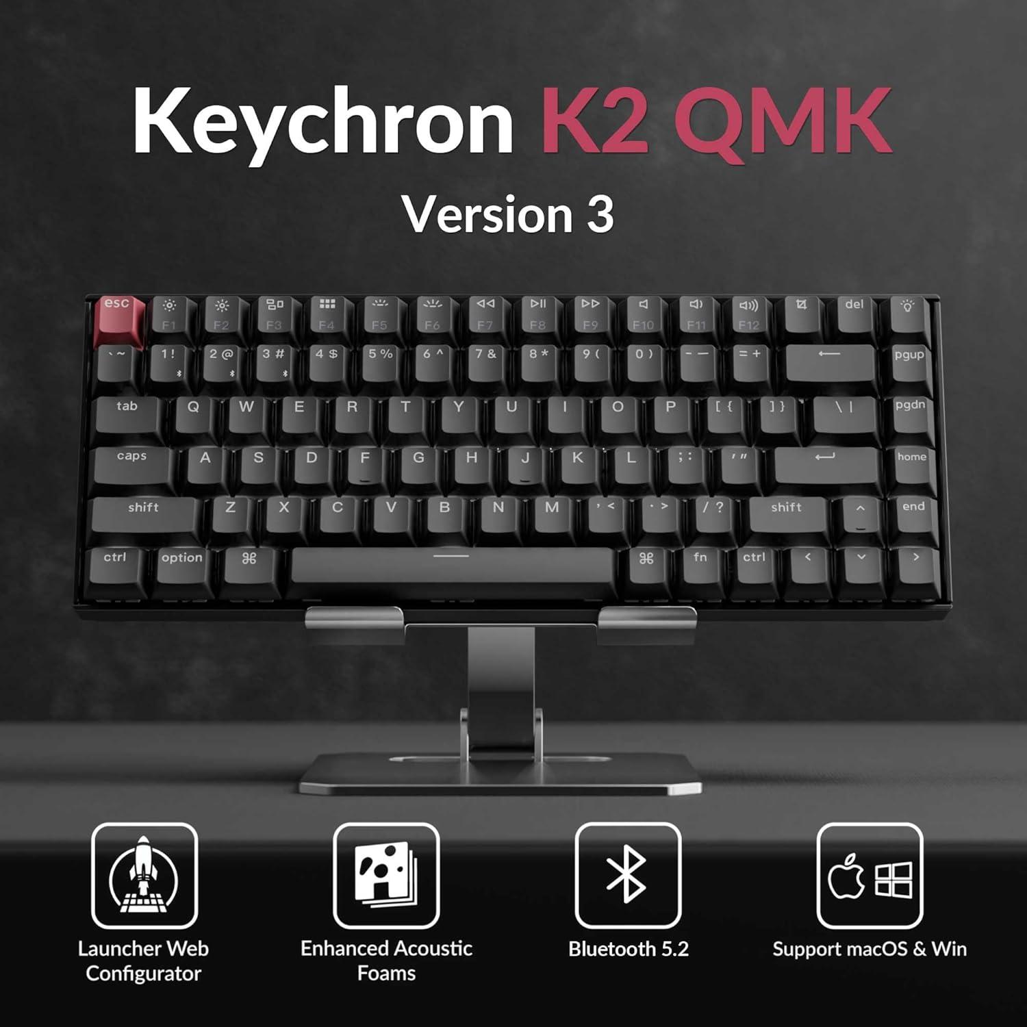 Keychron K2 75% Layout Bluetooth Wireless Mechanical Keyboard K Pro Brown Switch/White LED Backlit/USB C/Anti Ghosting/N-Key Rollover, 84 Keys Gaming Keyboard for Mac Windows-Version 2(Keychron Super Red Switch)