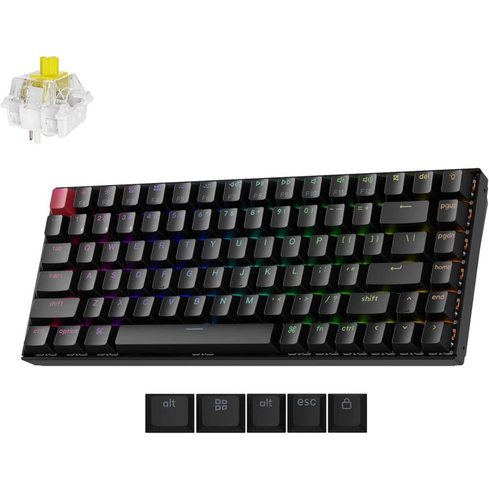 A 75% layout (84-key) RGB backlight compact Bluetooth mechanical keyboard. The ultimate keyboard that retains shortcut and arrow keys. Inclined bottom frame makes the K2 more comfortable to type even without a palm rest.