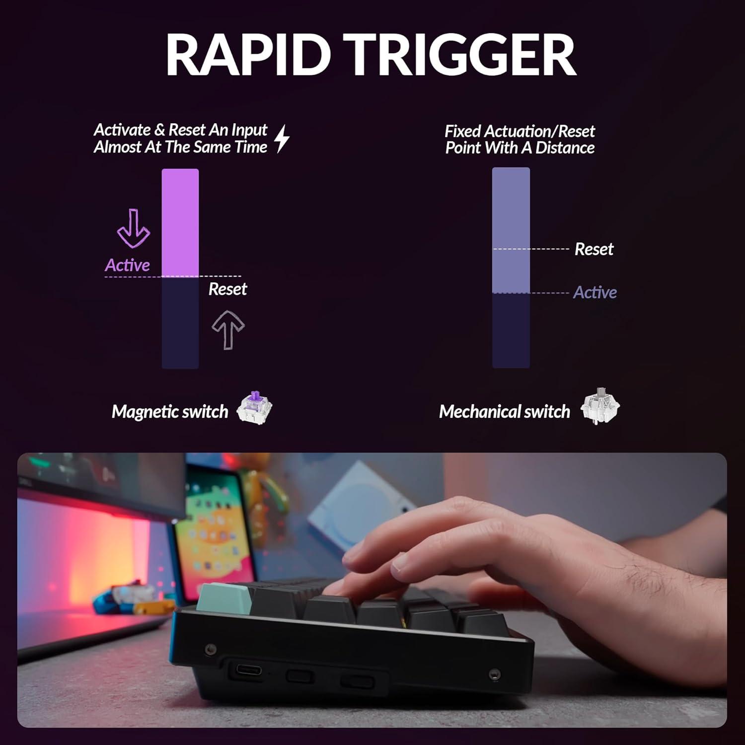 Adjustable Actuation Point: Customize each key with precision, adjusting actuation points from 0.2 to 3.8 mm with 0.1 mm sensitivity. Set shallow keypresses for instant actions and deeper ones for deliberate engagement, minimizing accidental touches and giving you an edge in both gaming and typing