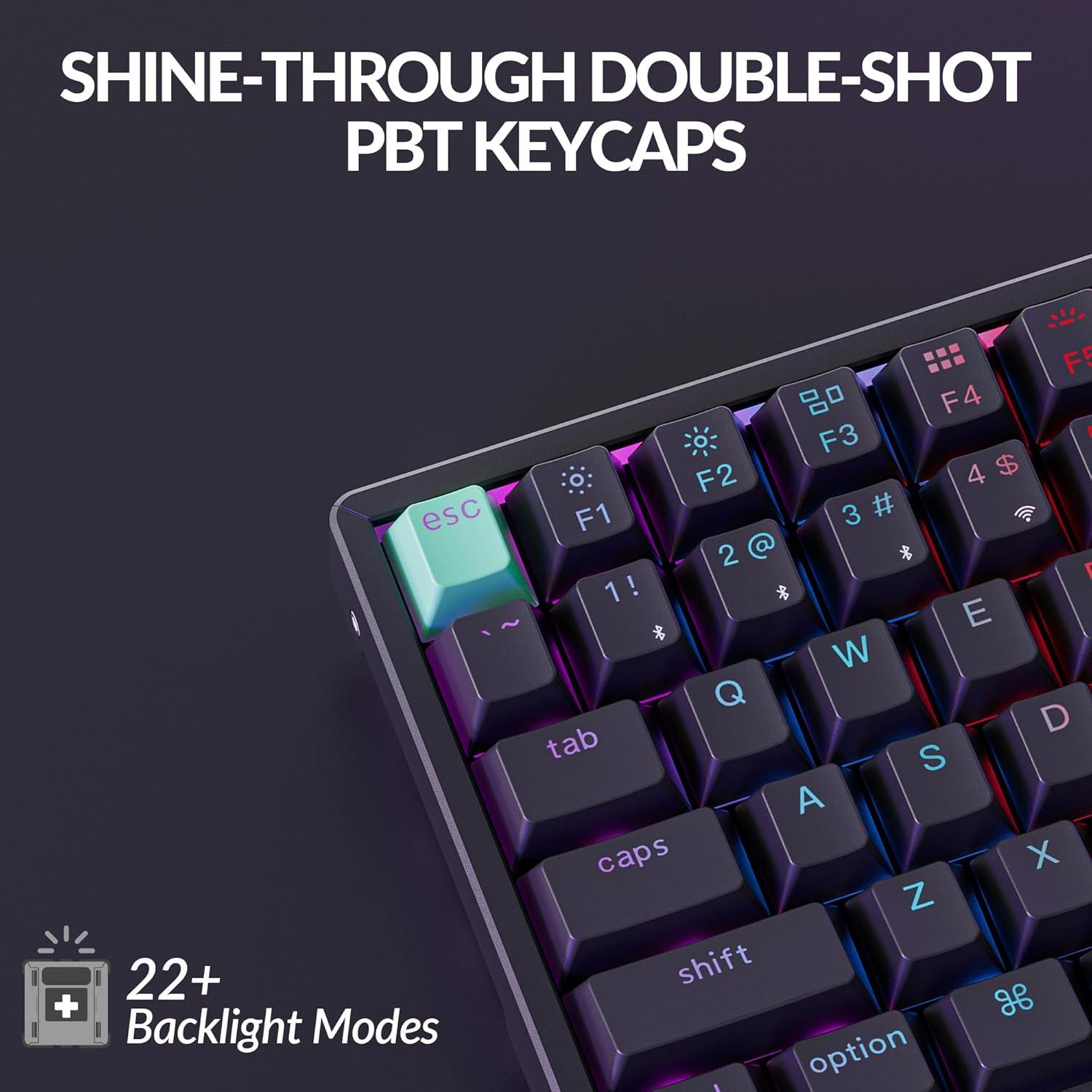 RGB Backlight & Shine-Through PBT Keycaps: Featuring 22+ RGB backlight effects and Cherry Profile shine-through PBT keycaps, the K2 HE ensures that every key is visible, enhancing the aesthetic and usability, whether you're working late or enjoying a gaming session in low light