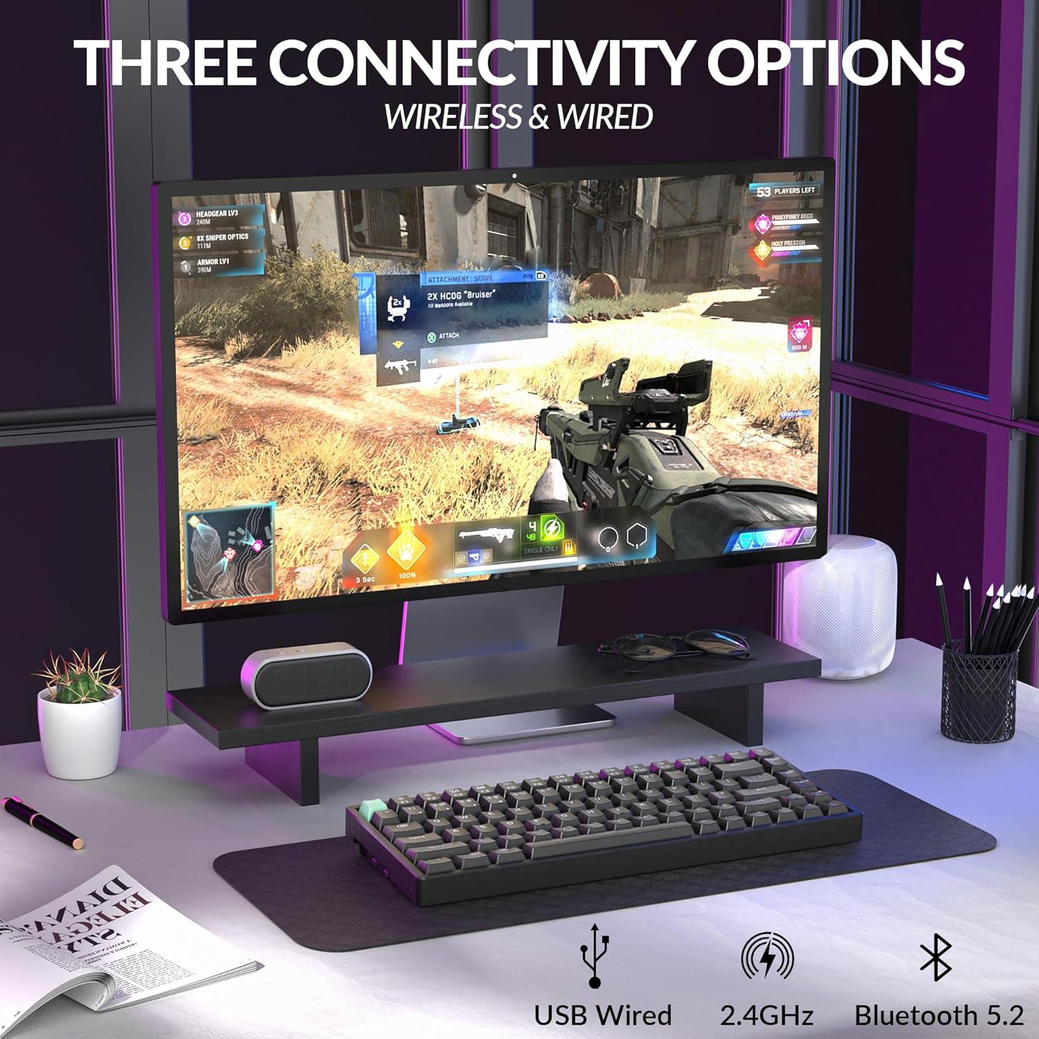 Three Connectivity Option: Switch seamlessly between devices with 2.4 GHz wireless, Bluetooth 5.2, and Type-C modes. Enjoy a 1000 Hz polling rate for competitive gaming or connect up to three devices for efficient multitasking across your computer, phone, and tablet, etc