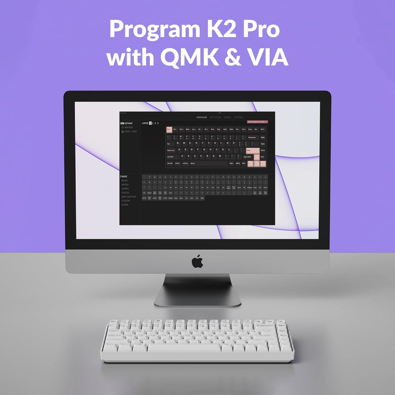 Program with QMK & VIA – With the K2 Pro’s QMK/VIA, simply connect the K2 Pro to your device with a cable, then you can drag and drop your favorite keys or macro commands to remap any key you want on any system (macOS, Windows, or Linux). An ultra-low-power ARM Cortex-M4 32-bit STM32L432 MCU which is powerful, and equipped with 128K Flash will provide more flexibility for developers.