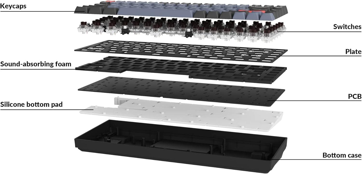 Hot-swappable – The K2 Pro hot-swappable sockets are mounted on the PCB, so you can hot-swap every switch on the K2 Pro with almost all of the 3pin and 5pin MX style mechanical switches on the market (including Cherry, Gateron, Kailh, Panda, etc.) without soldering. Also integrated the PCB-mounted screw-in stabilizers for a smoother typing experience with less wobbliness on the big keys such as space bar, shift, enter, and backspace. The Keychron K2 Pro also supports third-party screw-in PCB stabilizers.