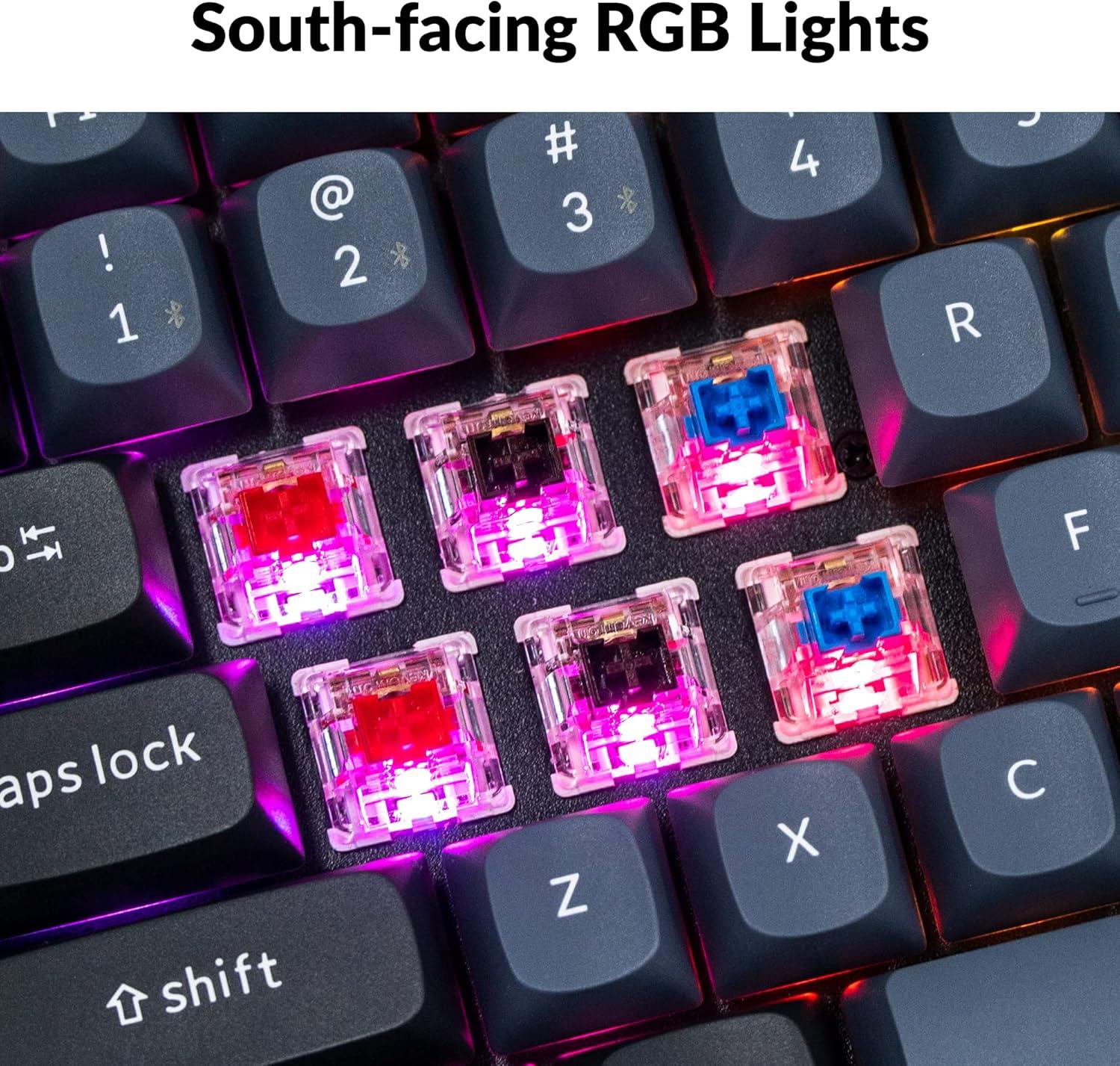 Keychron K2 Pro: New upgraded QMK/VIA Aluminum wireless custom mechanical keyboard with RGB backlight allows anyone to master any keys or macro commands on its 75% compact layout through VIA, it has included keycaps for both Windows and macOS, and users can hot-swap with any MX mechanical switch in a breeze. The pre-lubed Keychron K Pro red switches pre-installed given that 2 ±0.4mm pre-travel and 45 ±10gf operating force, features a nice linear feeling.