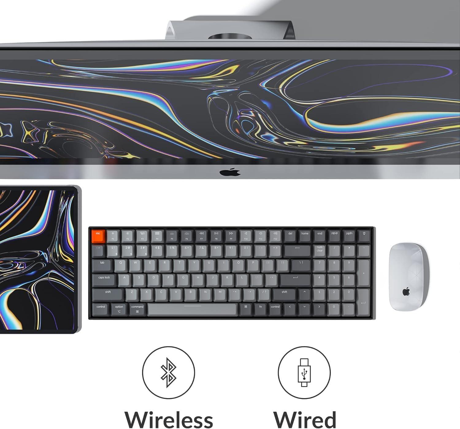 A 96% layout (100-key) white LED backlight wireless mechanical keyboard with a number pad in a compact design that’s built for productivity and a tactile typing experience.