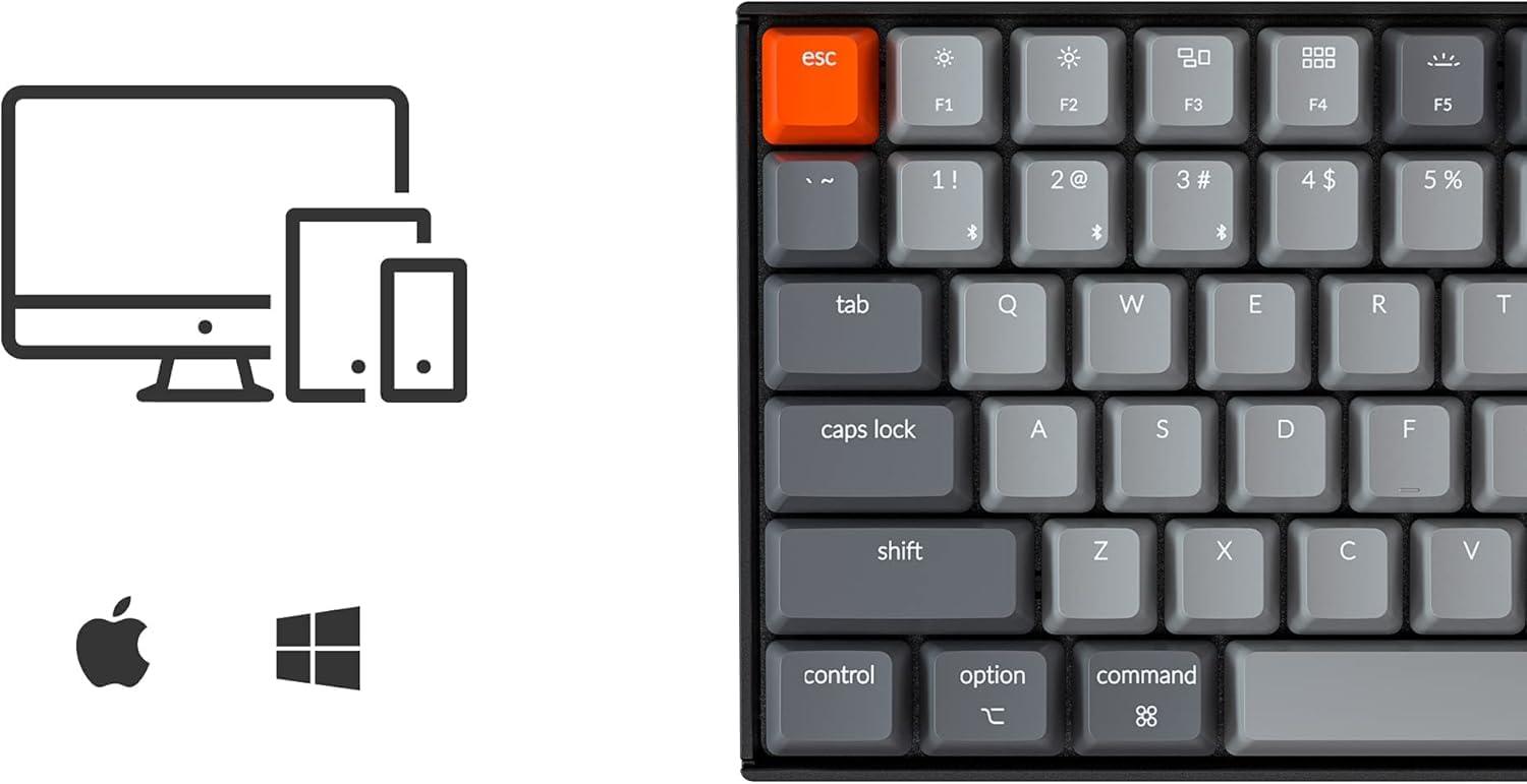 With a unique Mac layout, the K4 has all the necessary Mac function keys while still being compatible with Windows. Extra keycaps for both Windows and Mac operating systems are included.