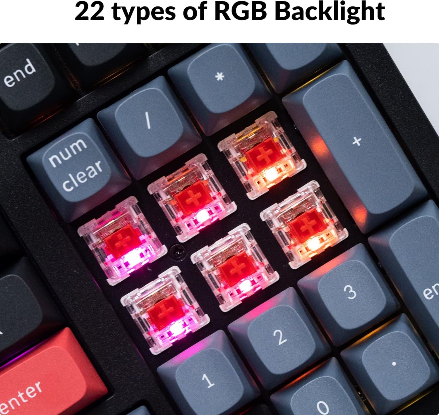 Hot-swappable: The hot-swappable sockets are mounted on the PCB and compatible with almost all the MX style 3pin and 5pin mechanical switches on the market (including Gateron, Cherry, Kailh, etc.), you can install or change the switches without soldering. Pre-installed the pre-lubed Keychron K Pro brown switch providing unrivaled tactile responsiveness.