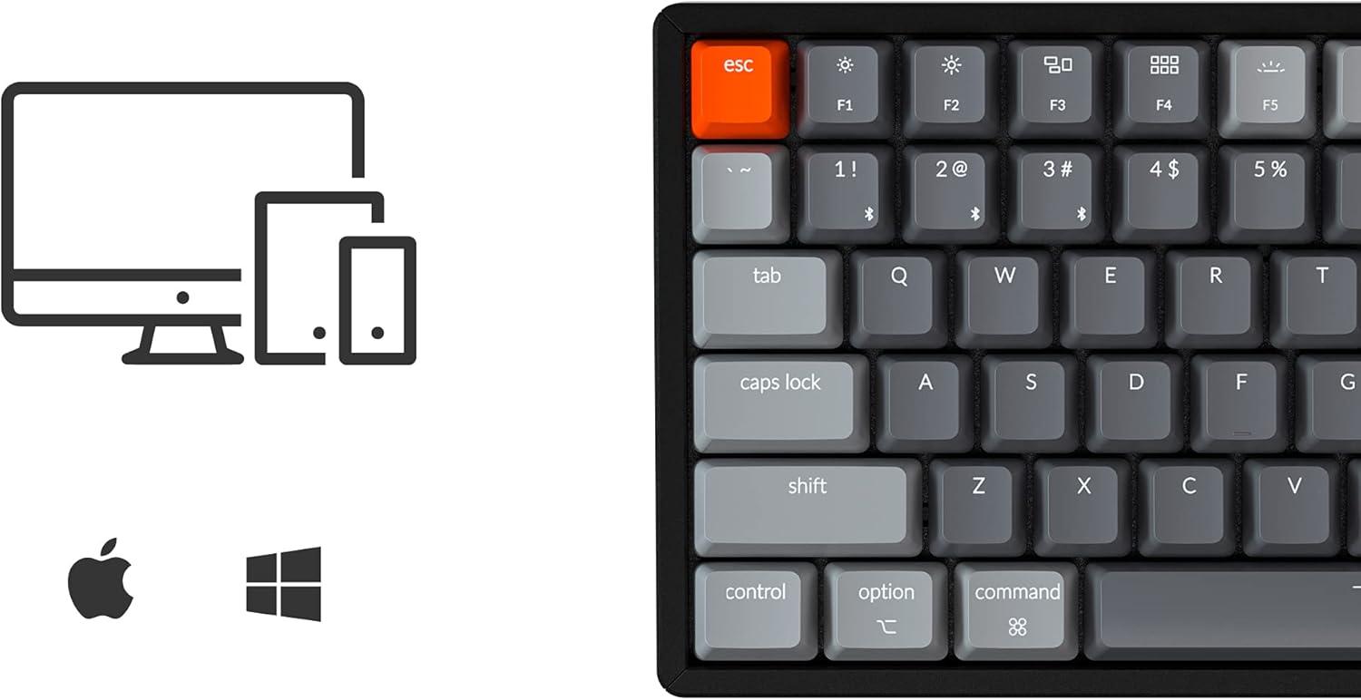With a unique Mac layout, the K4 has all the necessary Mac function keys while still being compatible with Windows. Extra keycaps for both Windows and Mac operating systems are included.