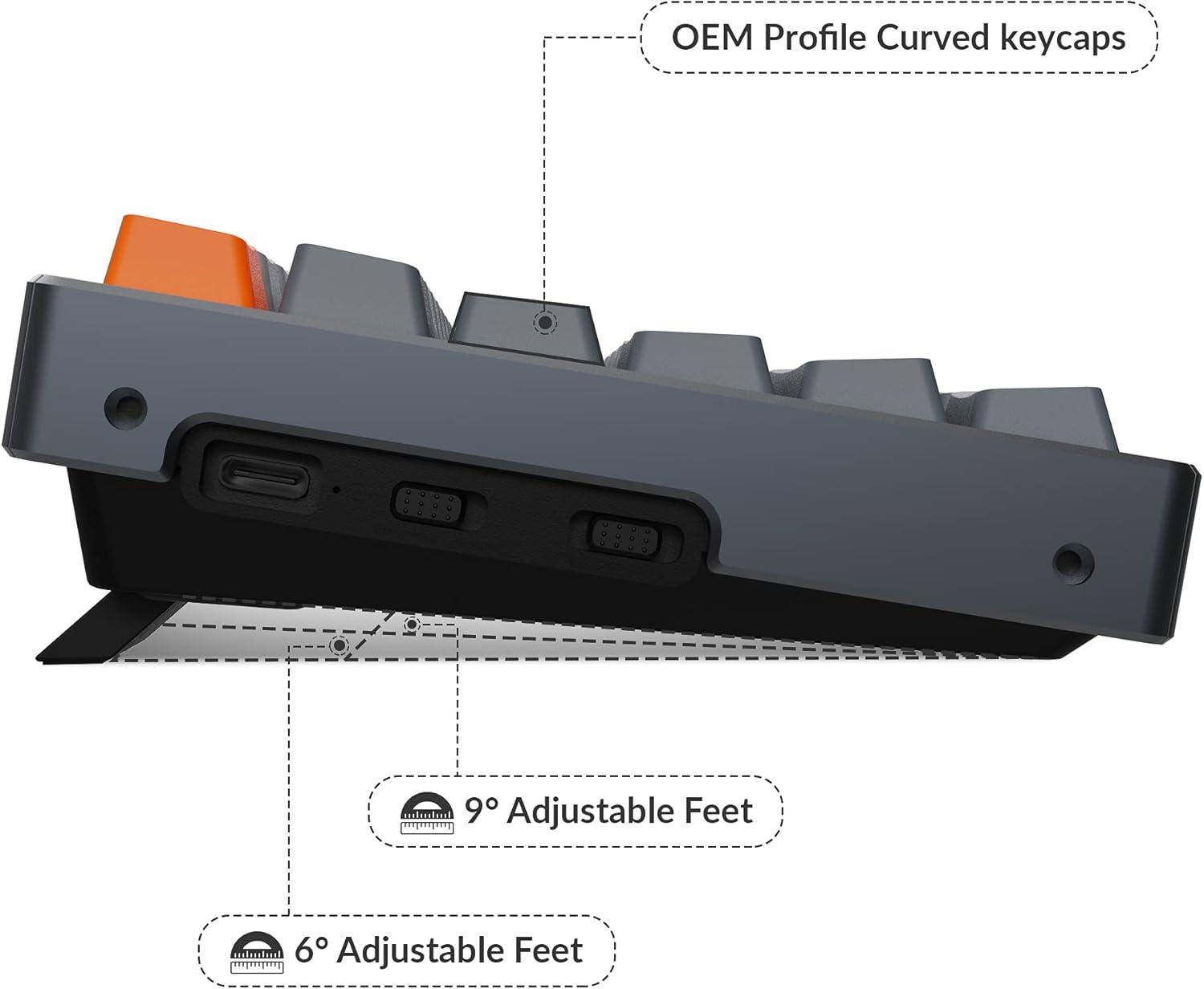 The K4 can last up to 240 hours (with backlit disabled) with a 4000 mAh big battery, which is one of the biggest in mechanical keyboards. N-key rollover (NKRO) on wired mode or 6KRO on wireless mode.