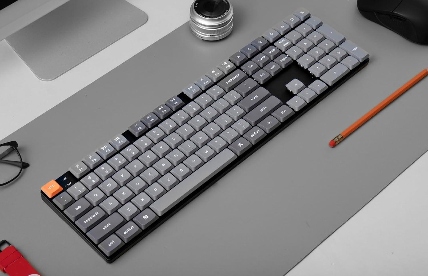 ✅ 3-Mode Mechanical Keyboard: The K5 Max is a low-profile QMK/VIA wireless mechanical keyboard. Combines advanced 2.4 GHz wireless, Bluetooth, Type-C wired connectivity, and an ultra-slim space-efficient 100% layout. The K5 Max features QMK/VIA key remapping, a 1000 Hz polling rate (on 2.4 and wired modes), PBT keycaps, and more as a premium productivity partner.
