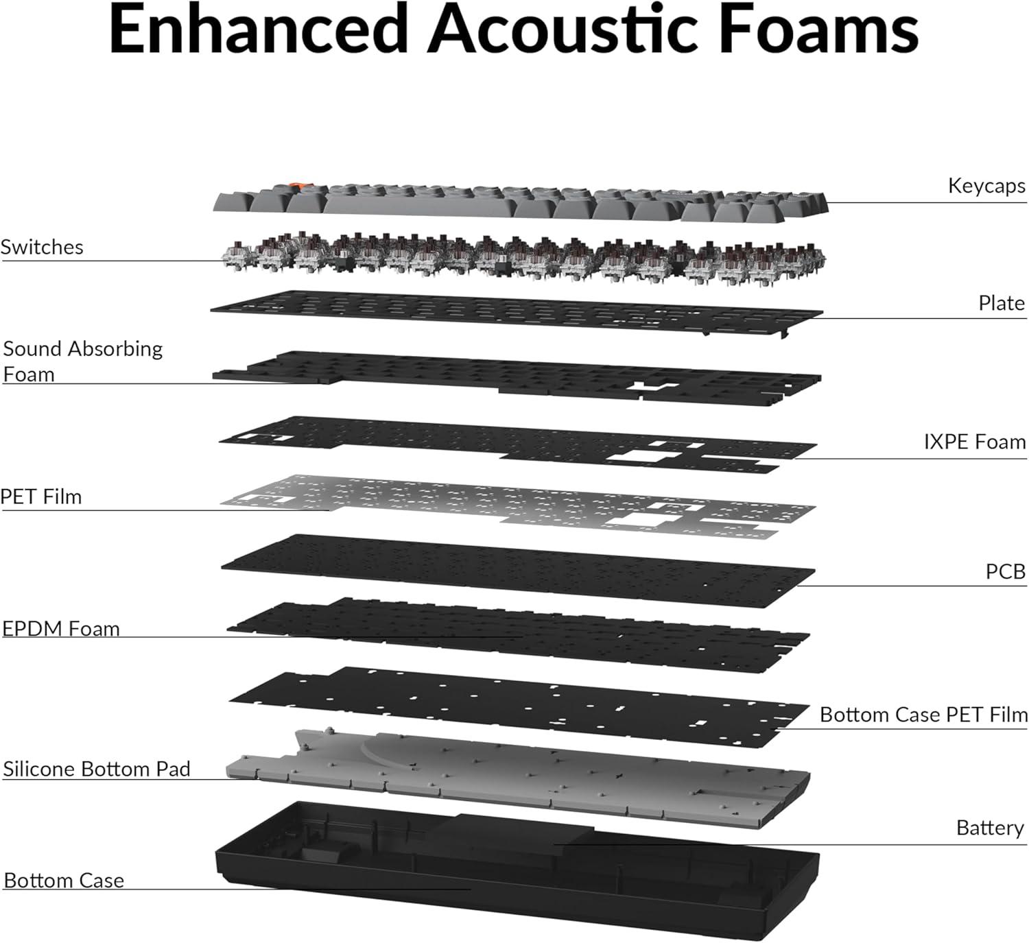 Upgraded Typing Experience – Equipped with IXPE acoustic foam, EPDM foam, and a steel plate for comfort, responsiveness, and durability. The added weight enhances stability while providing satisfying feedback and a quieter typing sound.