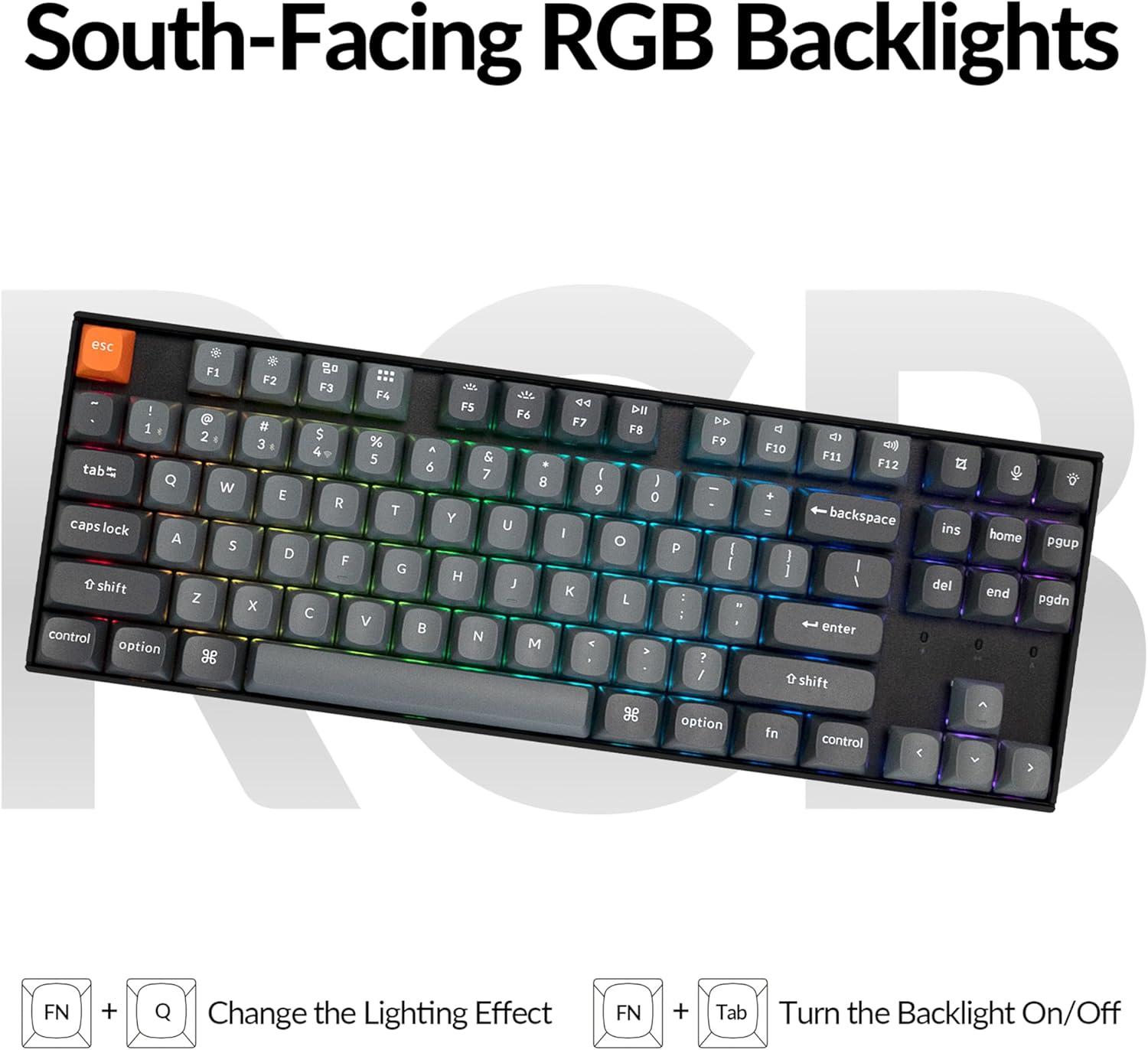 Keychron K8 Max Custom Mechanical Keyboard Wireless, TKL 2.4 GHz/Bluetooth 5.1/Wired QMK Programmable RGB, Hot-Swappable with Keychron Super Red Switch Compatible with Mac Windows Linux(Hot-Swap Keychron Super Brown Switch)
