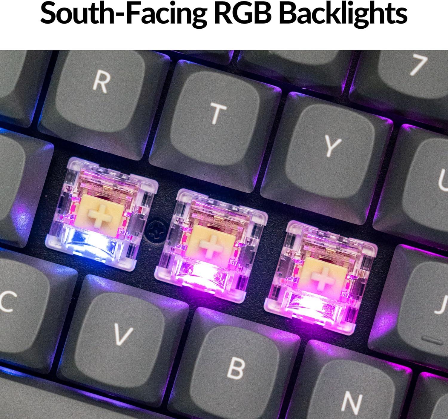 Double-Shot PBT Keycaps & RGB Backlighting – Featuring our unique OSA profile, these double-shot PBT keycaps provide a comfortable feel and resist oil buildup and non-shine-through. Enjoy over 22 RGB backlight modes, with south-facing LEDs designed for optimal illumination from the typist’s angle.