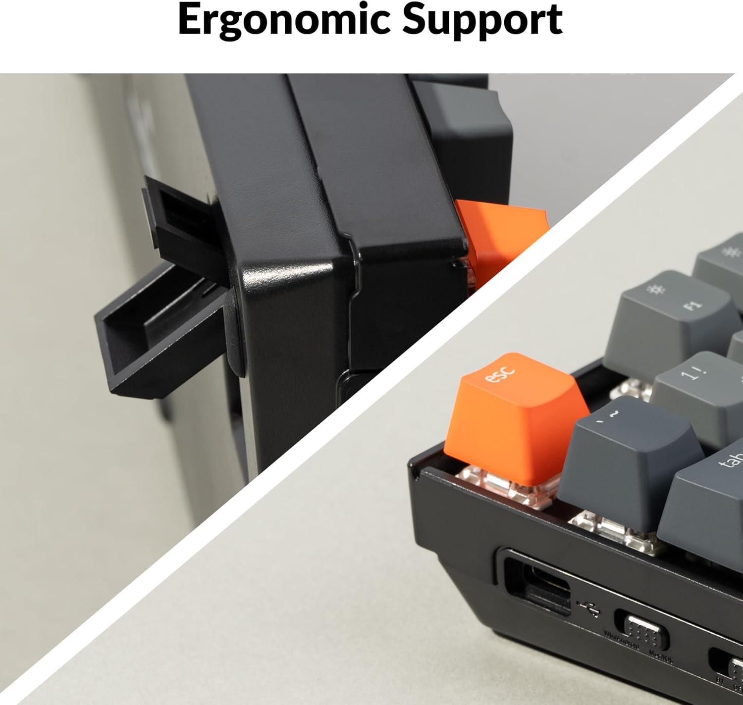 The K8 can last up to 200 hours (with backlight off) with a 4000 mAh big battery, which is one of the biggest in mechanical keyboards. Two level adjustable feet and inclined bottom frame provides a great ergonomic support for long lasting typing comfort.