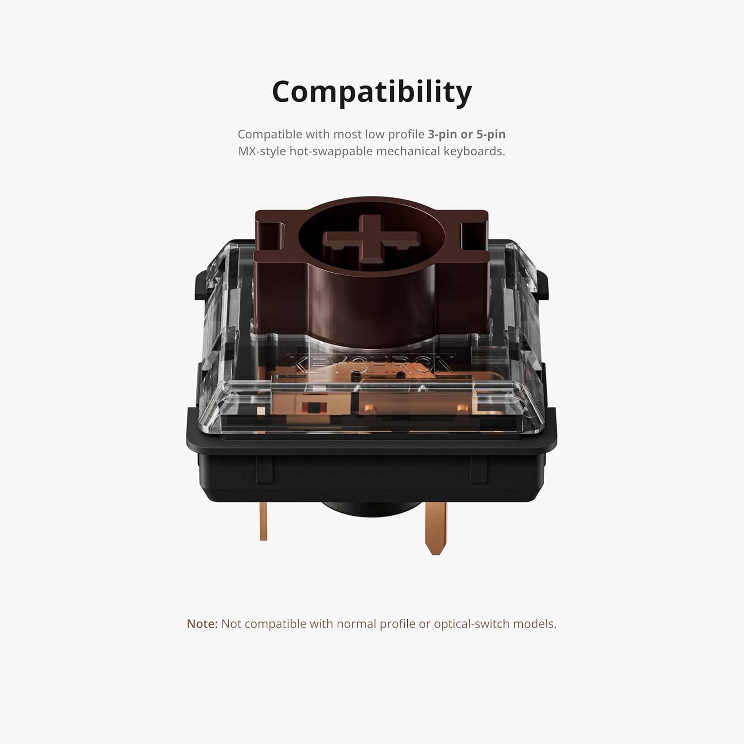 Wide Keyboard Compatibility: Compatible with most 3-pin or 5-pin low-profile hot-swappable mechanical keyboards (excluding Keychron K1 Version 1–4). Note: Not suitable for optical or normal-profile mechanical keyboards.