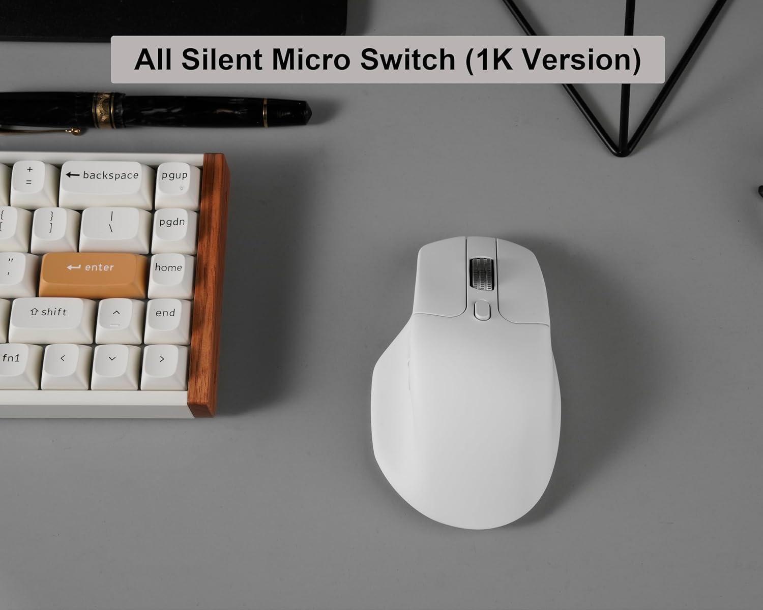 Keychron M6 Wireless All Silent Gaming Optical Mouse, 1000Hz Tri-Mode 2.4 GHz/Bluetooth 5.3/Wired, PixArt 3311 Sensor, 12000 DPI, Magnetic Metal Scroll Wheel for Windows PC/Mac - Black(White)