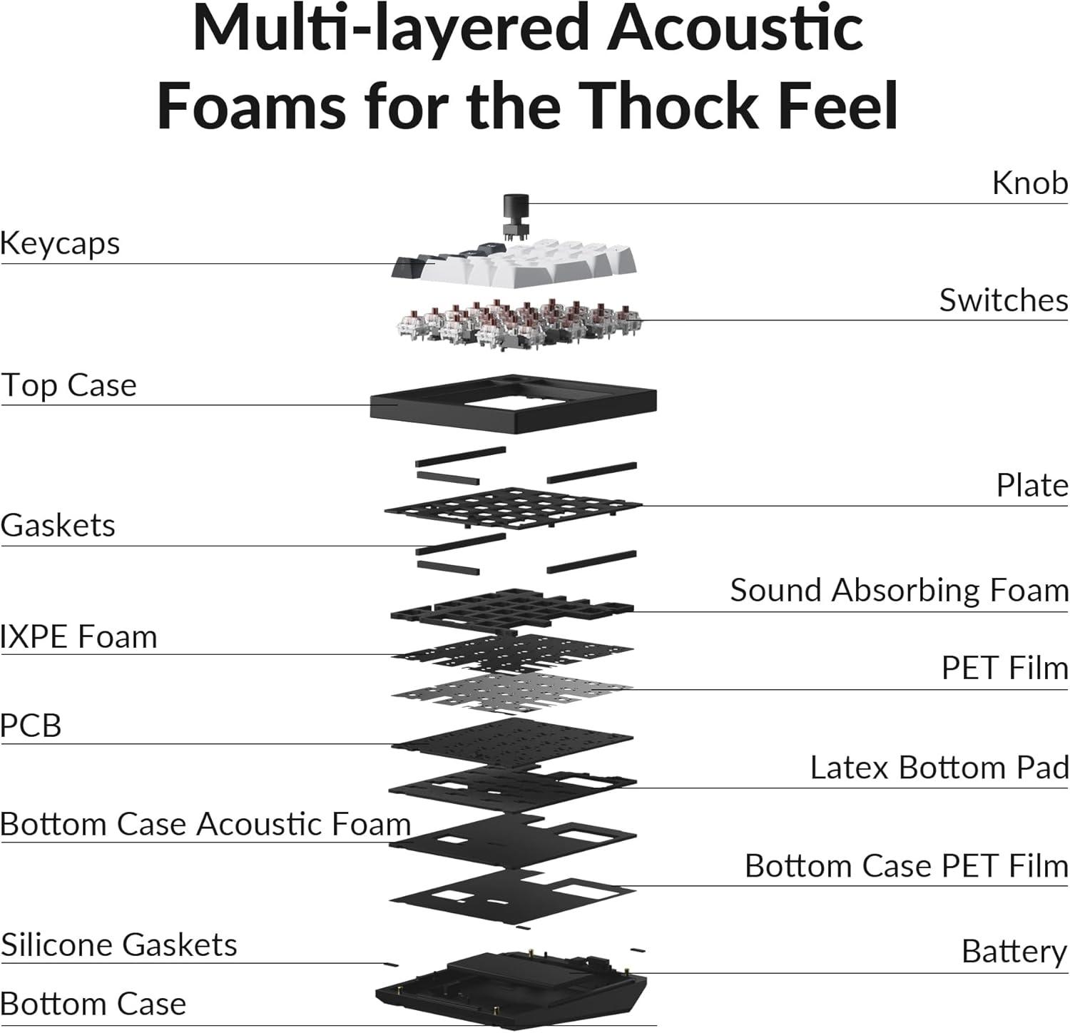 Enhanced Thock Feel – Added a combination of premium acoustic foams such as IXPE, PET, and Latex. Together with our double-gasket design, screw-in stabilizers, and more. Each keystroke has become more enjoyable.
