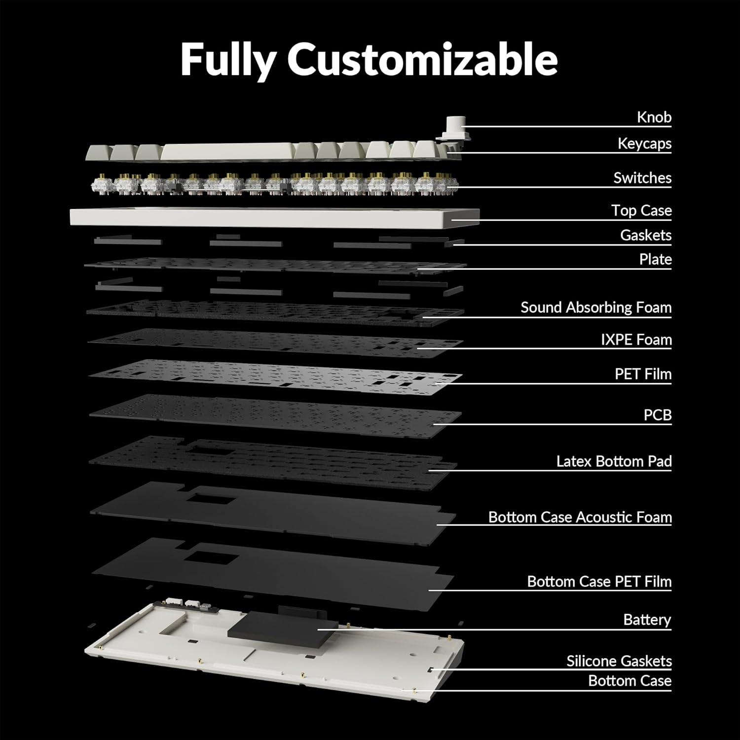 Easy Assemble – Designed every component to be able to assemble easily so you can customize and adjust each component, the PCB-mounted screw-in stabilizers for a smoother typing experience with less wobbliness on the big keys such as the space bar, shift, enter, and delete keys. You can even customize your favorite stabilizers on your own.