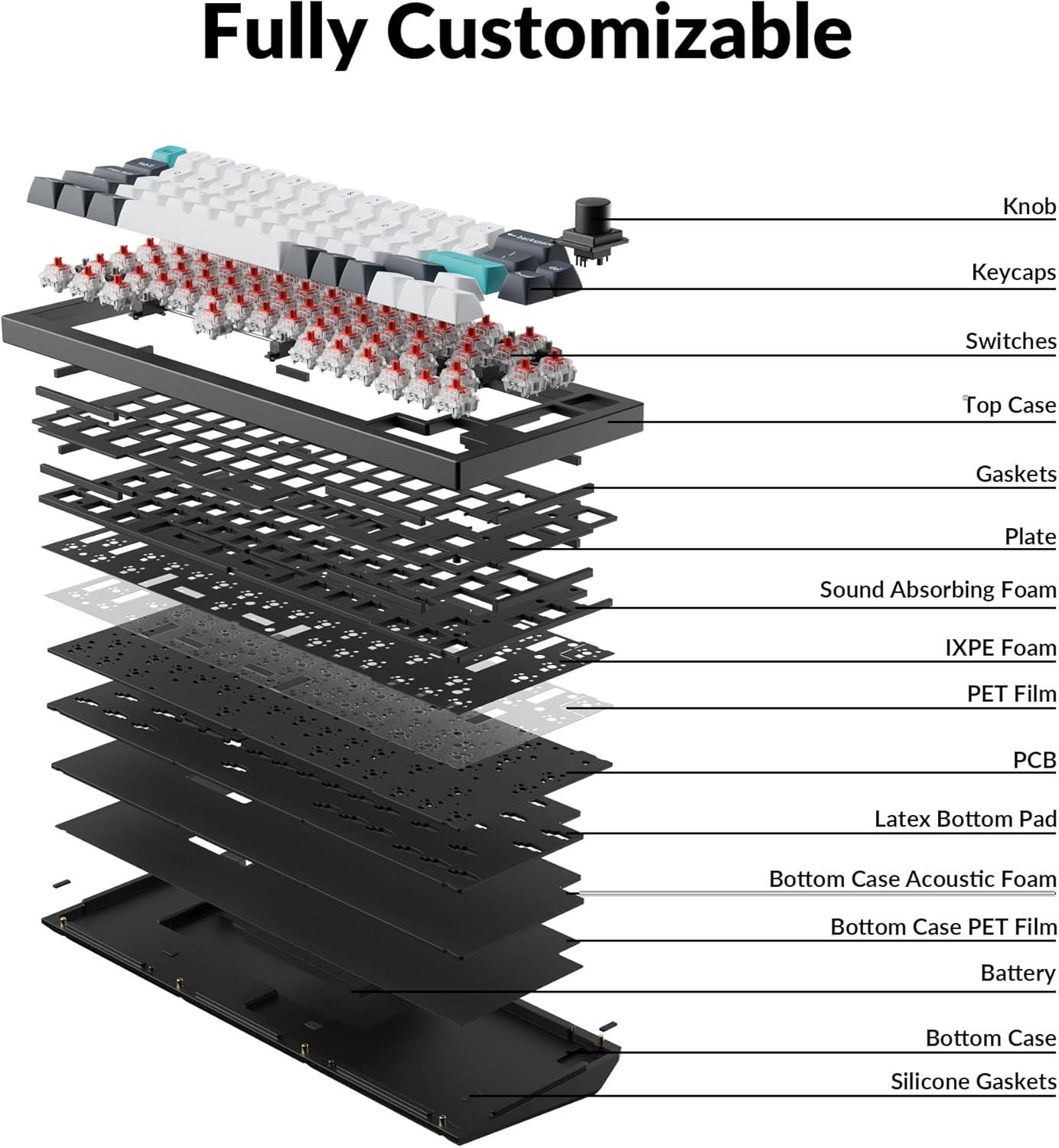 Enhanced Thock Feel – Added a combination of premium acoustic foams such as IXPE, PET, and Latex. Together with our signature features, such as the double-gasket design, PBT keycaps, screw-in stabilizers, and more. Each keystroke has become more enjoyable.