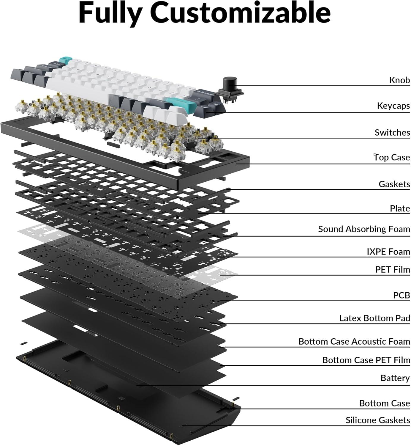 Enhanced Thock Feel – Added a combination of premium acoustic foams such as IXPE, PET, and Latex. Together with our signature features, such as the double-gasket design, PBT keycaps, screw-in stabilizers, and more. Each keystroke has become more enjoyable.