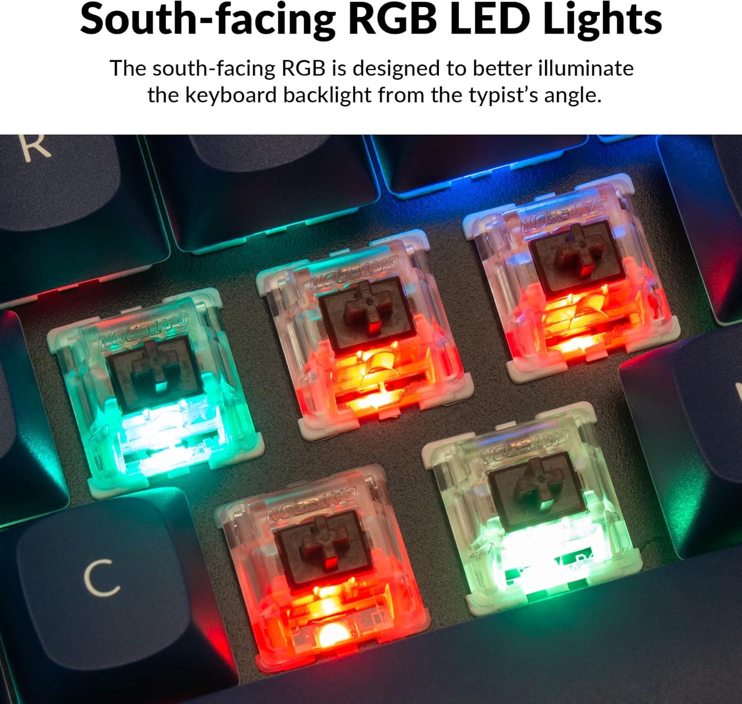 The south-facing RGB is designed to better illuminate the keyboard backlight from the typist’s angle with the premium non-shine-through PBT keycaps installed. The PBT keycaps will provide excellent oil resistance, enhance the type feel, and prevent the legends from fading out.