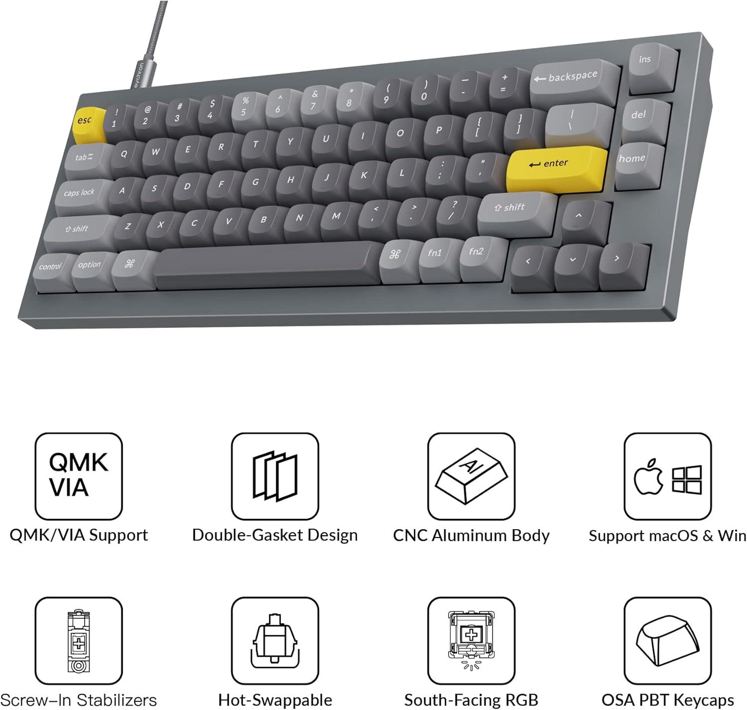 Be the first to review “Keychron Q2 Wired Custom Mechanical Keyboard, QMK/VIA Programmable Macro, Full Aluminum, Hot-Swappable Gateron G Pro Red Switch, 65% Layout Double Gasket Compatible with Mac and Windows – Blue(Gateron G Pro Brown Switch-Grey)”
