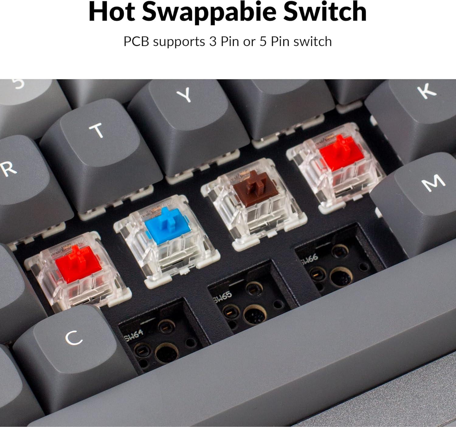 You can hot-swap the Keychron Q2 with almost all of the 3pin and 5pin MX style mechanical switches on the market (including Cherry, Gateron, Kailh, Panda, etc.) without soldering required. while the pre-installed Gateron G Pro mechanical linear red switch providing unrivaled tactile responsiveness with up to 50 million keystroke lifespan. The PCB-mounted screw-in stabilizer for “big keys” such as space bar, shift, enter, and delete are designed for less wobbliness.