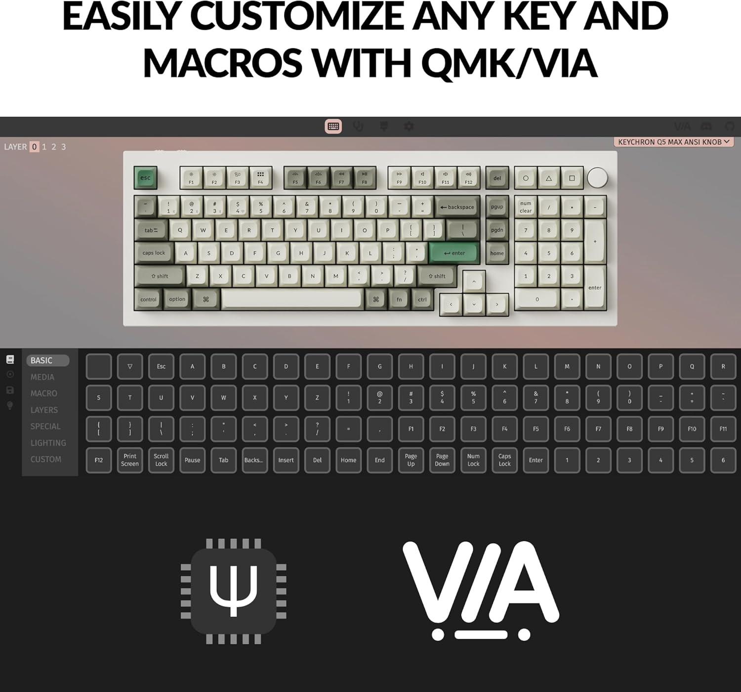 Remap with Keychron web app: Simply connect the Q5 Max to your device with a cable, open the Keychron Launcher web app, drag and drop your favorite keys or macro commands to remap any key on any system (macOS, Windows, or Linux) for a fluid workflow. Or create your keymap with open-sourced QMK firmware