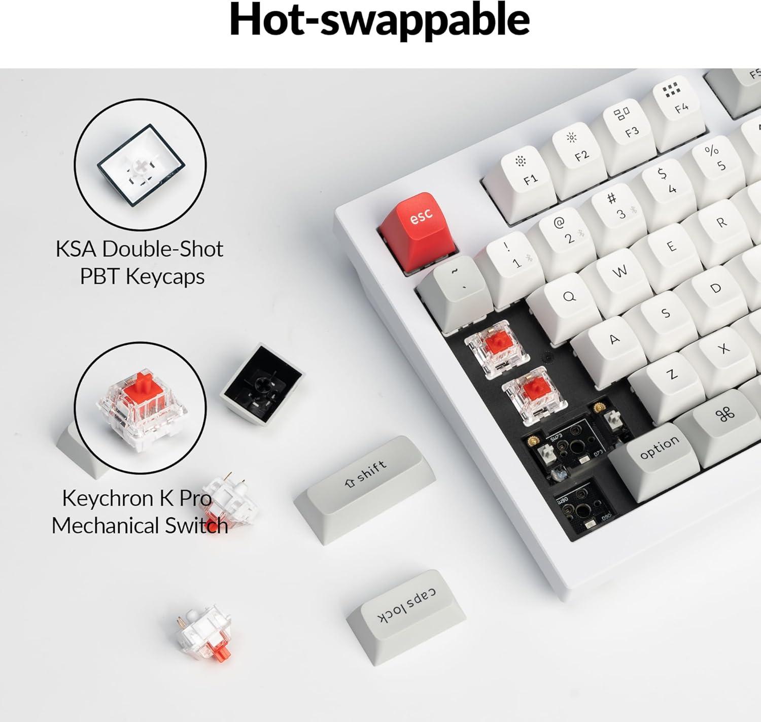 Hot-Swappable and PBT Keycaps – You can hot-swap every switch on the Q5 Pro with almost all of the 3pin and 5pin MX style mechanical switches on the market without soldering required. Our unique KSA profile double-shot non-backlight shine through PBT keycaps are oil-resistant and durable for long-term use. While the south-facing RGB backlight is made for premium non-shine through keycaps.