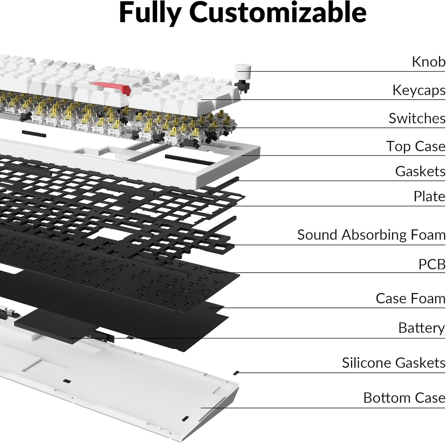 Fully Customizable – Comes with a solid fully metal body, screw-in stabs, flexible PC plate and double-gasket, we designed every component to be able to assemble easily so you can customize and modify each component with ease to create your ultimate typing experience.