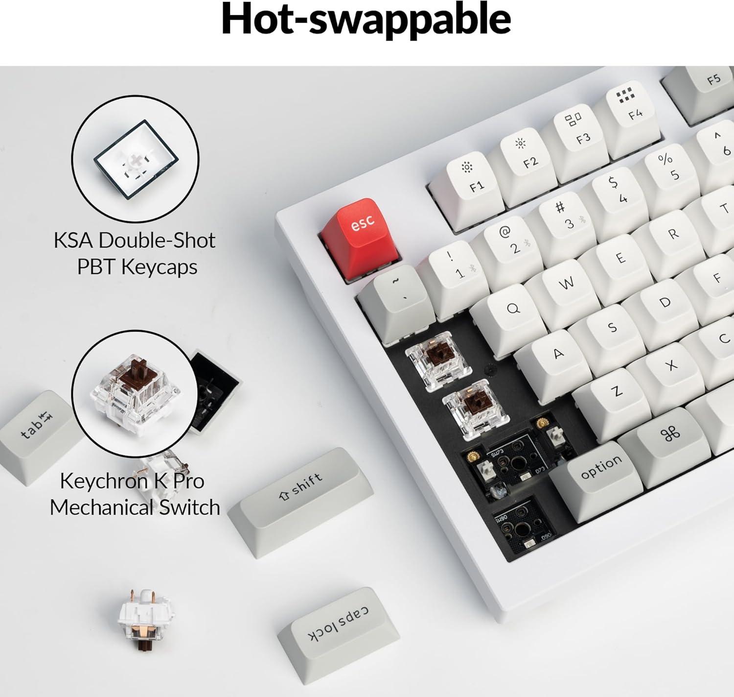 imageKeychron Q5 Pro QMKVIA Wireless Custom Mechanical Keyboard Full Aluminum 96 Layout with Programmable Knob DoubleGasket Design with Hotswappable K Pro Red Switch for Mac Windows Linux  WhiteHotswappable K Pro Brown Switch
