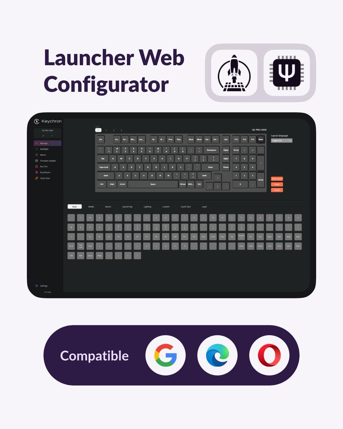 QMK Firmware with Launcher Web App – Customize endlessly with QMK open-source firmware for key remapping, macros, and shortcuts. Access the Keychron Launcher web app without installation, always staying up-to-date with the latest features—no downloads required.