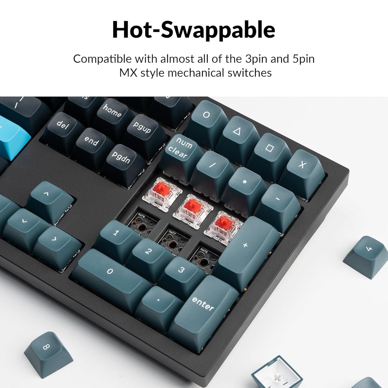 With the pre-lubed K Pro mechanical tactile banana switches will ensure the best fingertip smoothness. You can hot-swap every switch on the Q6 Pro with almost all of the 3pin and 5pin MX style mechanical switches on the market (including Cherry, Gateron, Kailh, Panda, etc.) without soldering required. Comes with 22 types of RGB backlight settings. You can further fine-tune the RGB hue, saturation, brightness, effect speed, and different modes, or even remap these keys with QMK/VIA.