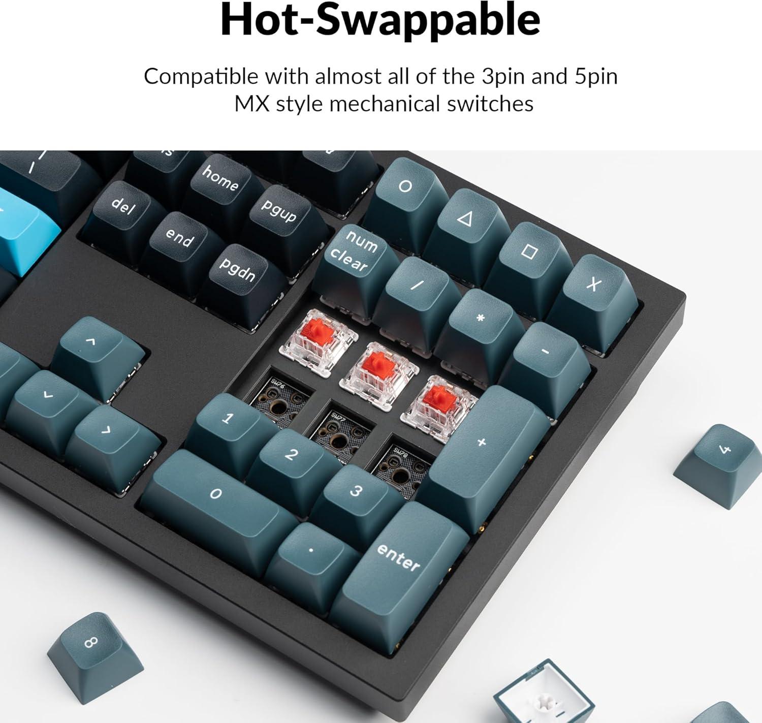 With the pre-lubed K Pro mechanical tactile banana switches will ensure the best fingertip smoothness. You can hot-swap every switch on the Q6 Pro with almost all of the 3pin and 5pin MX style mechanical switches on the market (including Cherry, Gateron, Kailh, Panda, etc.) without soldering required. Comes with 22 types of RGB backlight settings. You can further fine-tune the RGB hue, saturation, brightness, effect speed, and different modes, or even remap these keys with QMK/VIA.