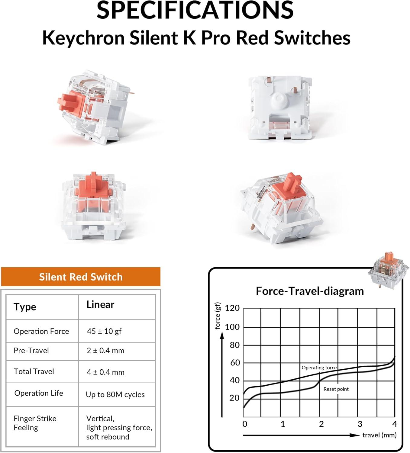 imageKeychron Q6 Pro Full Metal QMKVIA Custom Wireless BluetoothUSBC Mechanical Keyboard Full Size 108Key Programmable Knob RGB Backlit HotSwappable K Pro Banana Switch for Mac Windows LinuxBlackKeychron Super Silent Red Switch
