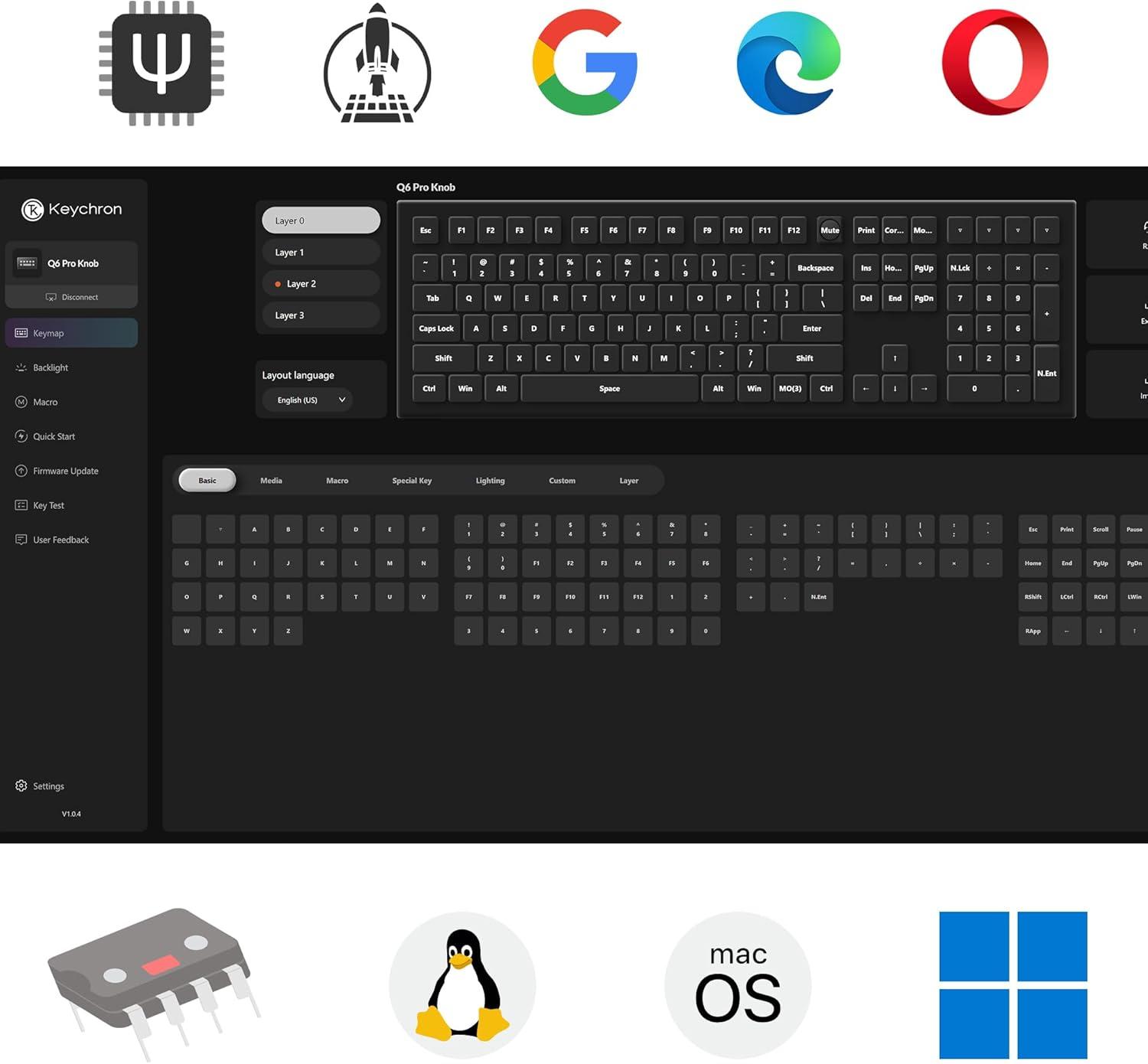 Keychron Q6 Pro allows anyone to remap any key, and create macro commands, shortcuts, or key combinations through the QMK/VIA. A powerful ultra-low-power ARM Cortex-M4 32-bit STM32L432 chip (MCU) equipped with 128K Flash will provide more flexibility for developers.