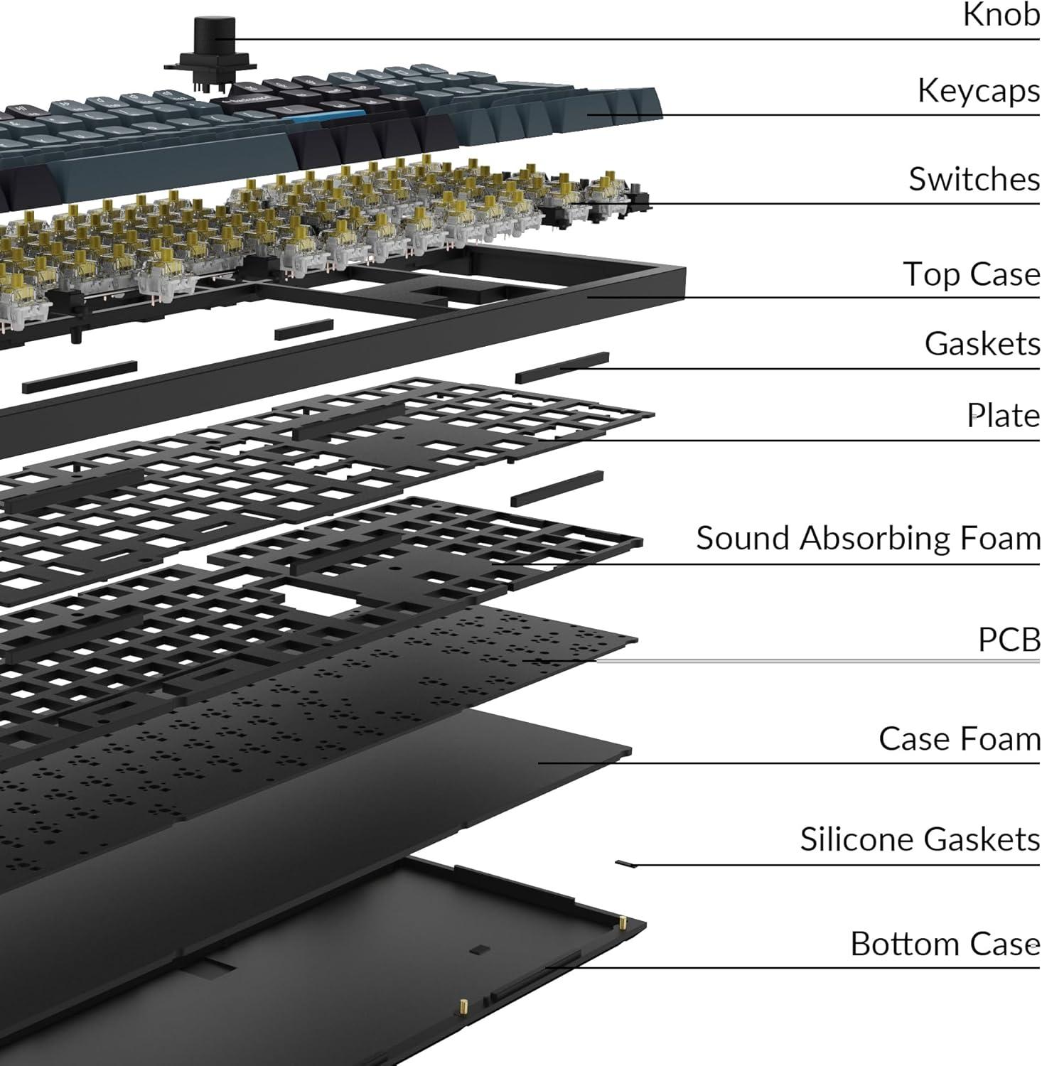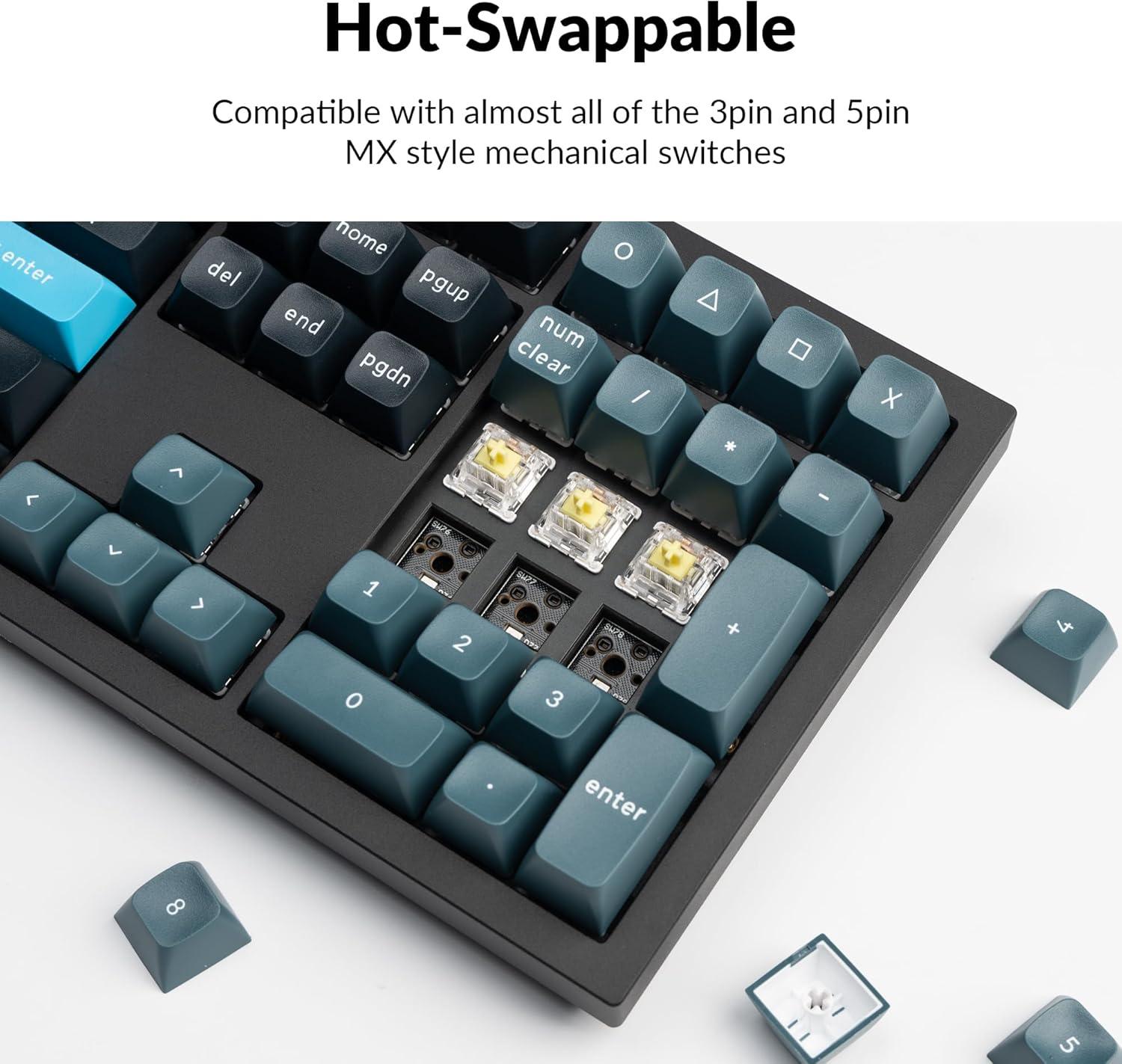 With the pre-lubed K Pro mechanical tactile banana switches will ensure the best fingertip smoothness. You can hot-swap every switch on the Q6 Pro with almost all of the 3pin and 5pin MX style mechanical switches on the market (including Cherry, Gateron, Kailh, Panda, etc.) without soldering required. Comes with 22 types of RGB backlight settings. You can further fine-tune the RGB hue, saturation, brightness, effect speed, and different modes, or even remap these keys with QMK/VIA.