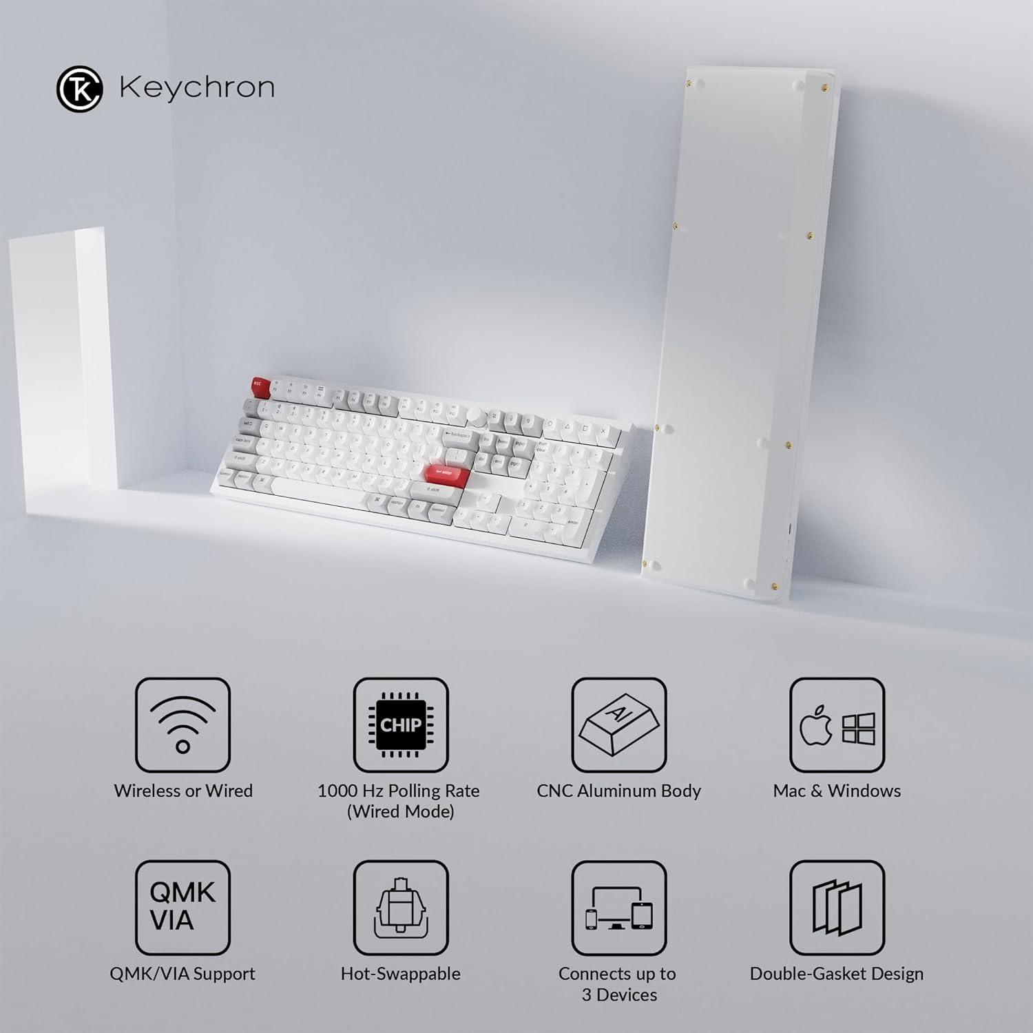 KSA Double-Shot PBT Keycaps: Designed the unique Keychron spherical-angle (KSA profile) double-shot keycap set with premium non-backlight shine through PBT material, that is oil-resistant and durable for long-term use. Comes with 22 types of RGB backlight settings. You can further fine-tune the RGB hue, saturation, brightness, effect speed, and different modes, or even remap these keys with QMK/VIA.